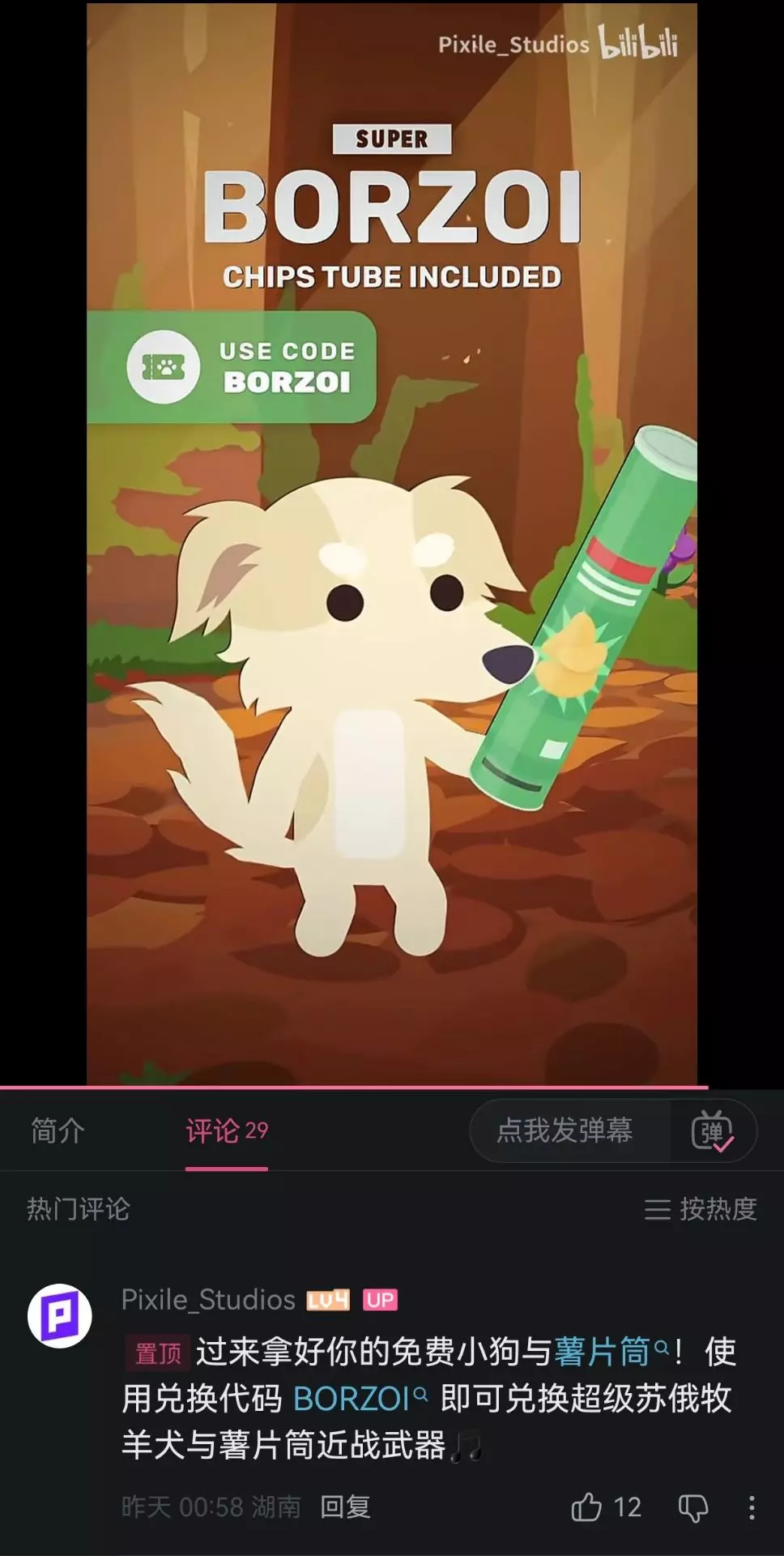兑换码:BORZOI code:BORZOI 来自官方9月30日B站动态 超级苏俄牧羊犬+薯片筒近战武器 是之前超火的“让我来帮你”梗