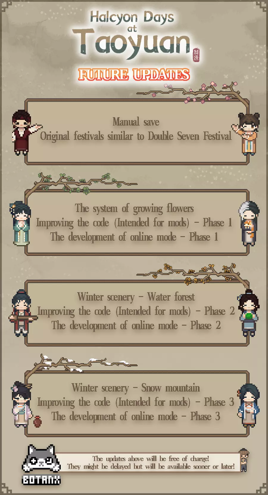 《桃源仙境的宁静时光》现已在Steam平台发售,定价12美元。其他货币的价格则基于12美元进行推荐定价。在发售首两周内,购买本体游戏可享受9折优惠,并能免费获得DLC“金蛇礼包”作为早期购买奖励!