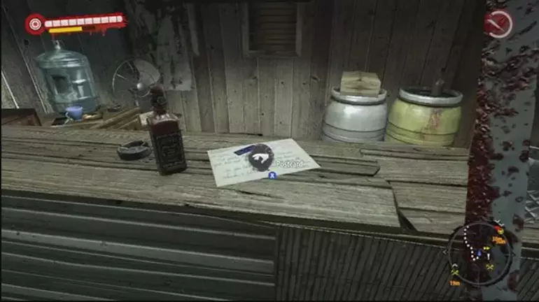 和往常一样,我们正在查看地图,寻找标有绿色标记的位置。 明信片7 这张明信片需要你在隔离区稍作绕道,前往一个名为“尼克的房子”的死亡区域(它在你的地图上)。明信片位于二楼(经过尖叫者之后)的一个小型楼上卫生间里。