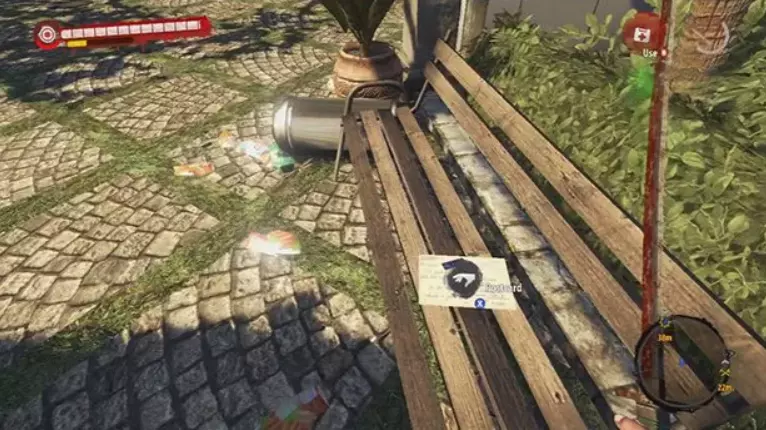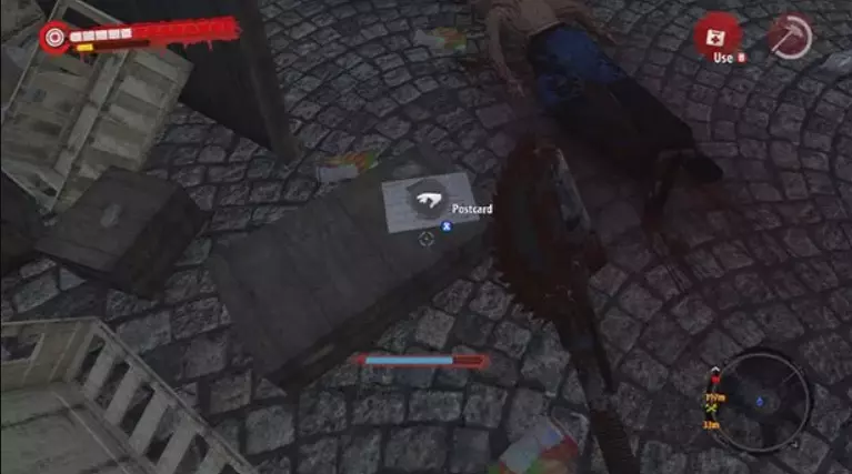 第12张明信片 这张明信片在教堂正入口附近的长椅上。注意这个拾取点附近的感染者群体和尖叫者僵尸。