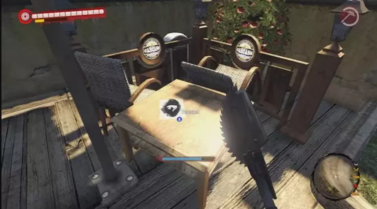 指南书页14 从屋顶电影院的紧急逃生梯往下走,有一片部分被封锁的区域,那里摆放着一套桌椅。书页就在桌子上。