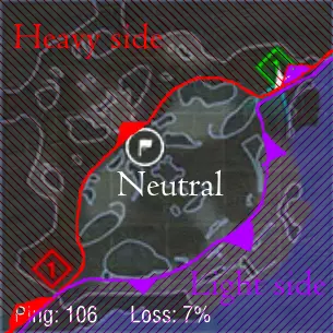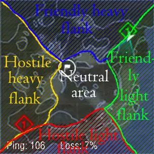 1. 游戏中当前所有地图均可分为三个部分: ① **重型方与轻型方(也可根据地图称为北/西/南/东方)** ② **“中立区域”**