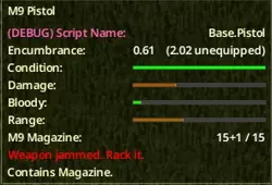 如前所述,枪械精准度不仅取决于瞄准技能,现在还会受到恐慌和疼痛状态的惩罚。如果和“高级弹道大修”类似的话,我推测压力、疲劳或疲惫状态也可能会带来瞄准惩罚,不过我并不完全确定。 使用枪械时,一定要避免对付大量僵尸,因为这会逐渐增加恐慌或压力,从而影响你的瞄准。 如果你想知道我在这次游戏流程中使用了哪些状态模组: Moodles Re-Animated(作者:Muhrakk) Square Borders for Moodles(作者:Molecule31) Weapon Jamming