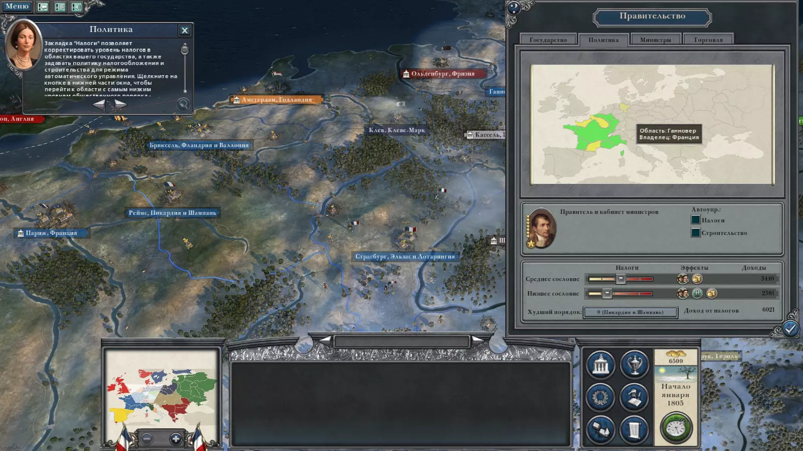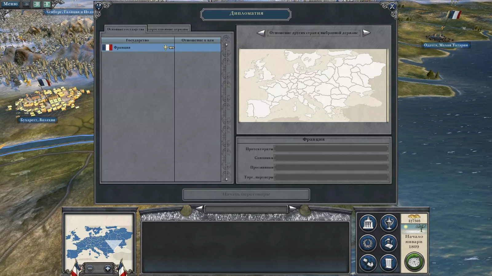 中立,但对法国持敌对态度;拥有不错的陆军和炮兵;被众多持友好态度的小国环绕。战役原则。基本要点。不要试图与所有人为敌,最好利用休整时间来增强军队;签订军事和贸易同盟;发展科技;为了快速调动军队,修建道路会让你轻松不少;在战役初期遣散不需要的部队;善用特工。贵族将加快研究进度,而间谍将在敌方城市制造破坏; 发动海盗战争; 关注秩序,最好将底层阶级的税收降至第二级; 不要只动用一支军队,而要多支军队协同作战,一支掩护另一支; 不要轻视围城战; 不要让军队陷入严寒或酷暑之中。