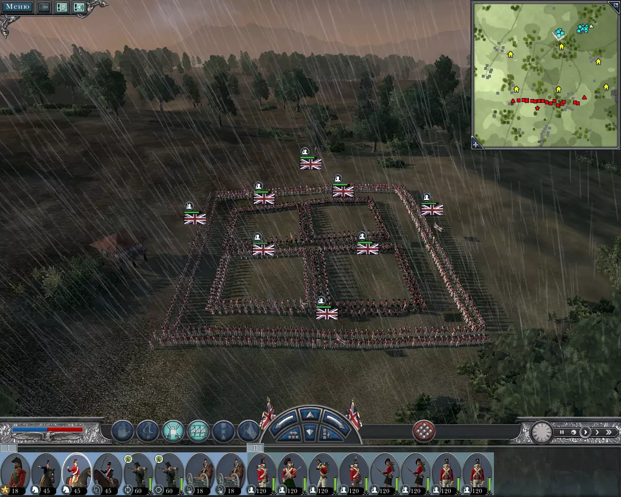 战斗前 “我们找到了一片广阔的战场: 终于有地方自由驰骋了! 我们搭建了堡垒。”首先需要确定军队的组成。在我看来,最理想的军队组成如下: 指挥官; 2个榴弹炮部队; 3个12磅炮部队; 3个轻骑兵部队; 3个轻步兵部队或神射手部队; 8个线列步兵部队。 现在你的军队已准备好战斗。