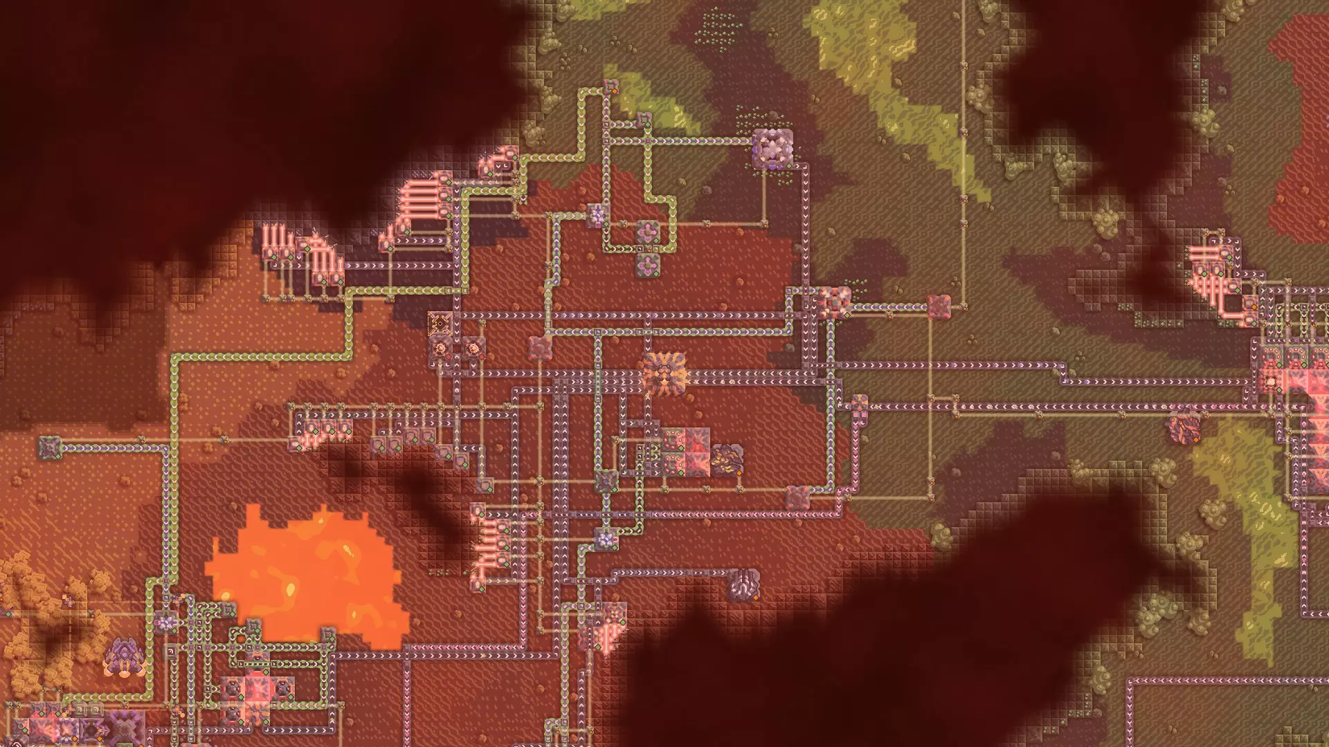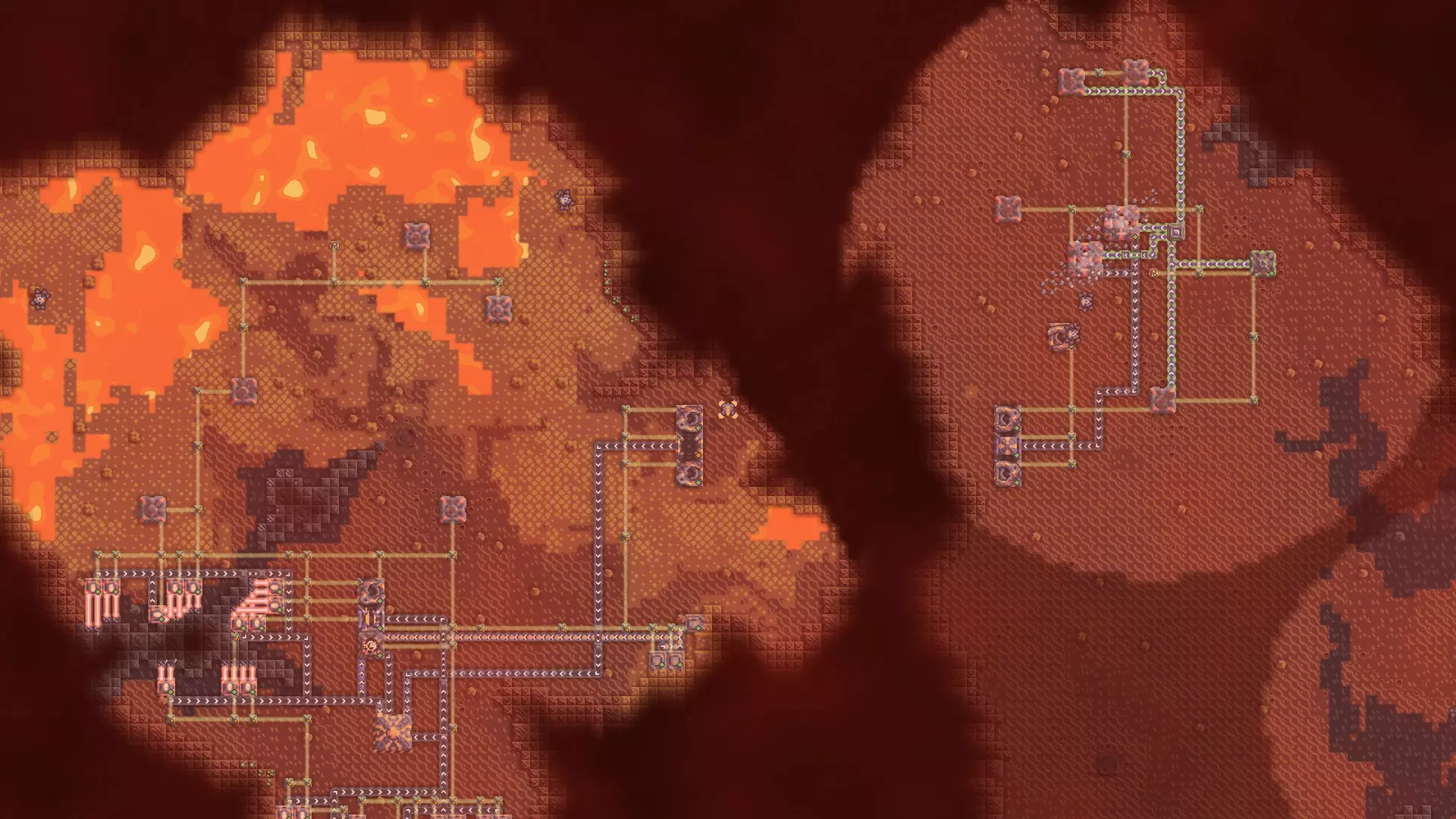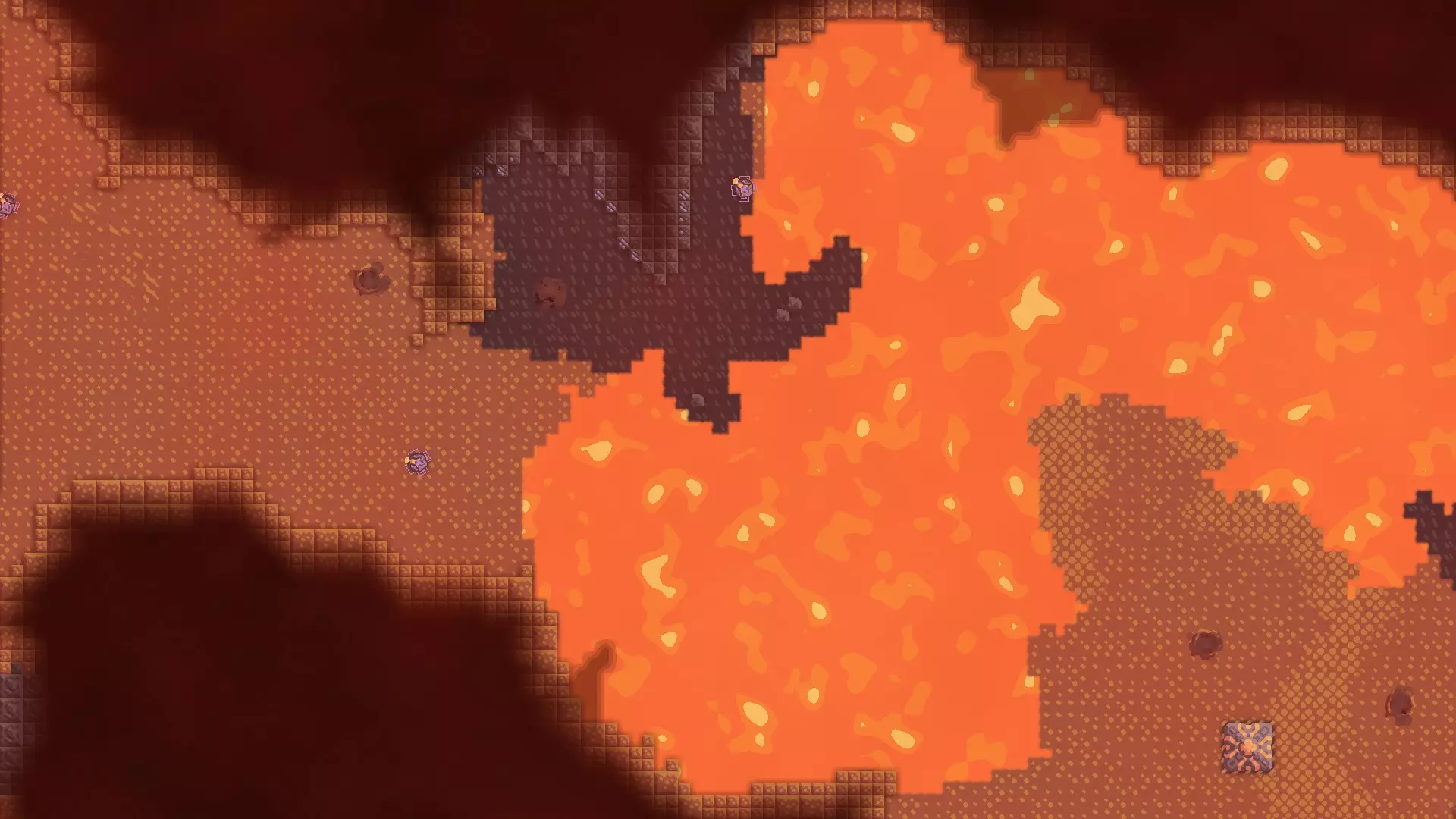 基地右侧的通道被熔岩湖阻挡,这迫使你建造能够穿越熔岩的单位,或者在占领另一个基地后从下方夺取这个核心。