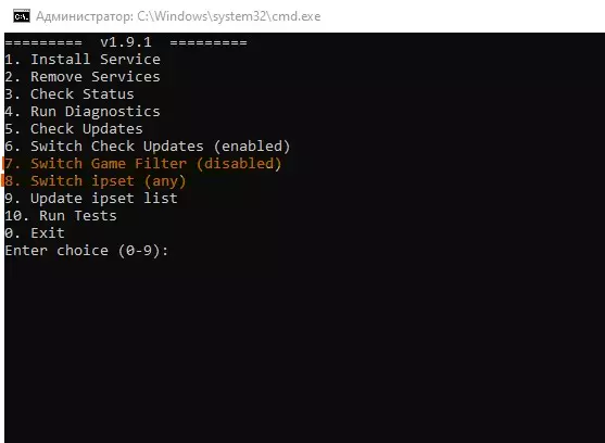 3. 在(service)中需要执行与图片所示相同的操作。 -1. 在7. Switch Game Filter中应设为(disabled),只需按下7键,然后按Enter键。 -2. 在8. Switch ipset中应设为(any),操作方法相同,只是将7键替换为(8)键。
