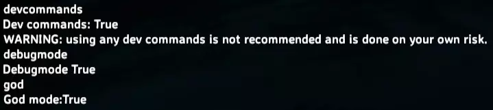 ⚠️注意:旧方法仍然有效,但会覆盖游戏内设置。 https://steamcommunity.com/sharedfiles/filedetails/?id=2433260095 ▕ 0.2 创造模式 按下:F5(在游戏世界中时) 输入:devcommands 输入:debugmode 输入:god 按下:B 确保输入命令后,控制台会在命令后显示(True)以确认。如果显示(False),只需再次输入该命令,它就会变为(True)。 如果操作正确,会显示如下: