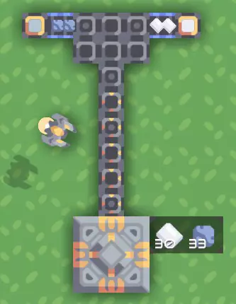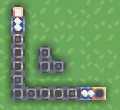 转弯,2个及以上资源流。 那么,我们的传送带离不开转弯,转弯是通过两个普通闸门和一个分拣器实现的。