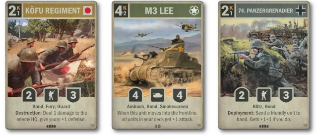 同时,像“KOFU REGIMENT”“M3李”和“第74装甲掷弹兵”这类卡牌,若你能掌控兵力分散所带来的风险,就能发挥强大效果。这些单位是对严谨构筑卡组和精准把握时机的回报,团队凝聚力将决定一次出牌是扭转战局,还是在压力下功亏一篑。 “协同”为卡组构筑和战术规划带来了新维度,强调配合、风险管理以及每一步行动的长远影响。 “后方战线”的新卡预览季正如火如荼进行中,还有更多卡牌尚未揭晓——包括更多展现该机制全部潜力的“协同”设计。 请关注《KARDS》官方渠道获取最新情报。准备好你的卡组,为国家集结吧。