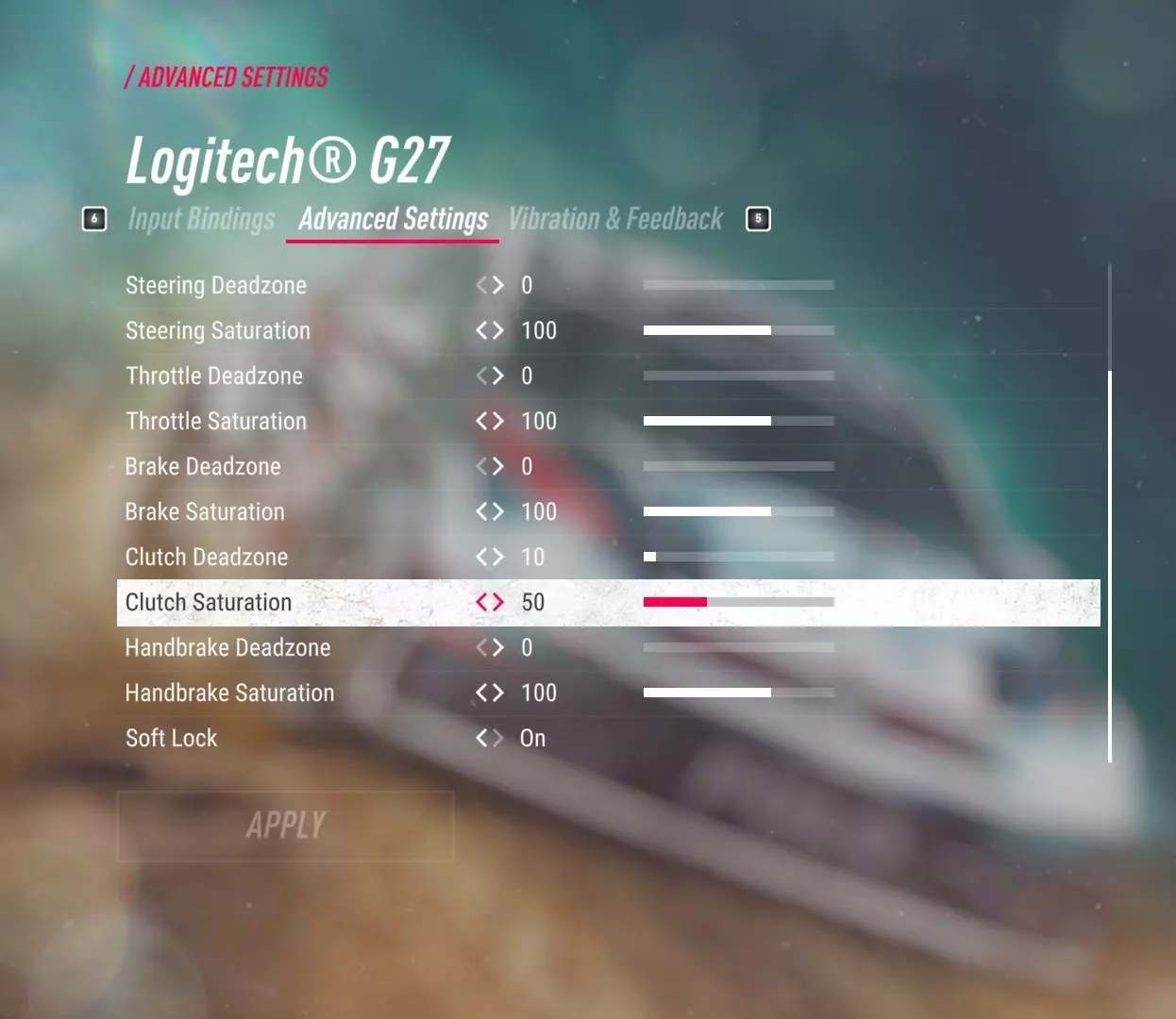 这里的所有设置均为默认值(或可根据个人偏好调整)。 我建议将“离合器死区”设为较小值,并适当降低“离合器饱和度”,以便在使用离合器踏板时获得更出色的离合器操作体验。