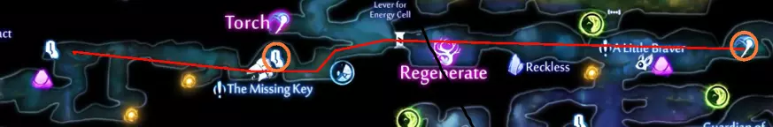 技巧与提示 注意:在最终清理前获得“Launch”会让一切变得简单得多。既然你现在的地图上应该已经显示了所有秘密,那么清理任何可能遗漏的内容应该都很轻松。 这是我所知道的唯一获取方法。我不确定这是否是开发者的预期方式。但无论如何,它能让获取这个光点变得轻而易举。 与“Turmoil”类似,“Lifeforce”也是一个极具挑战性的平台跳跃部分。由于你拥有“Launch”,如果遇到困难,可以利用它来获得优势。永远记住,落到地面上(即使是尖刺上)会重置所有平台。 完成平台跳跃部分后,“Launch”能让你更容易从顶部出口离开。 Willoh's End The Path