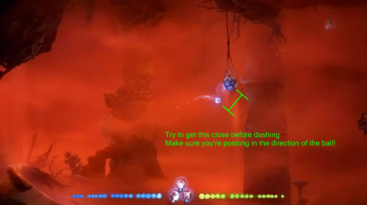 许多人认为掘地是个令人沮丧的机制,甚至有人觉得它存在设计缺陷。但这只在一定程度上是事实。 **存在问题的部分:** 目前,沙地上显示的HUD指示器存在严重问题。当奥里距离过远,或是没有完全面朝沙地时,指示器仍会显示,完全不可靠。在开发者修复此问题前,最好的办法是忽略它。 **不存在问题的部分:** 掘地能力本身,无论是用于移动还是冲刺,都没有问题。要成功进行沙地冲刺,需满足两个条件: - 奥里需要足够靠近沙地。这个距离比许多人想象的要近得多。可以参考上方图片来判断合适的距离。移动摇杆/按键需要指向沙子的方向。如果你使用键盘并瞄准沙块,将奥日(Ori)定位在与沙块呈45度角的位置可能是最简便的方法。另一方面,沙平台则相对简单,只要你离得足够近就行。但注意不要触碰它们,否则它们会碎裂。 关于沙平台的说明:沙平台在被触碰后会碎裂,但在接触地面后会自动重新出现。你可以在多个区域利用这一特性。例如,如果你因某些原因需要移除平台,可以尝试在空中停留尽可能长的时间。如果你正在尝试平台跳跃挑战时不小心移除了某个平台,可以落到地面(即使地面有尖刺)让平台重新出现。**所有平台都会重新出现,无论它们距离多远,因此你可以通过在任何地方接触地面来重置整个平台跳跃挑战。** **提示与技巧** 这个光点很容易被忽略。注意奥里在冲刺前与平台的距离。需要注意的是,在获得“森林之心”后,该区域会被封锁,强制你观看关于史雷克的过场动画。观看完过场动画并重新进入该区域后,它应该会重新开放。 这是最棘手的平台跳跃挑战之一。在尝试全程一命通关前,你可能需要多次练习这个挑战。再次提醒,如果你触碰到地面(即便是尖刺地面),所有沙质平台都会重置。 这个区域左侧有一个难以察觉的隐蔽角落。由于这个角落是安全区域,这意味着你可以从一个安全点跳到另一个安全点,顺时针绕过激光,全程无需承受伤害。 最终清理 路径