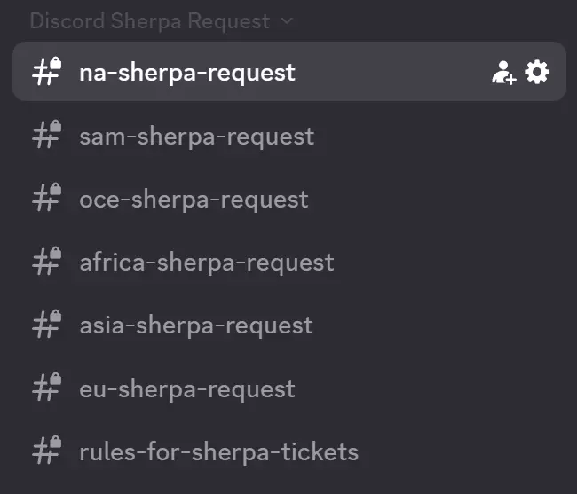 步骤 3 – 提交夏尔巴工单 通常情况下,你需要: 1. 进入类似#create-ticket或#request-sherpa的频道(频道名称可能略有不同)。 2. 点击按钮或对消息进行互动以开启工单。 3. 系统将创建一个私人文字频道或工单线程,你可以在此与夏尔巴或协调员交流。