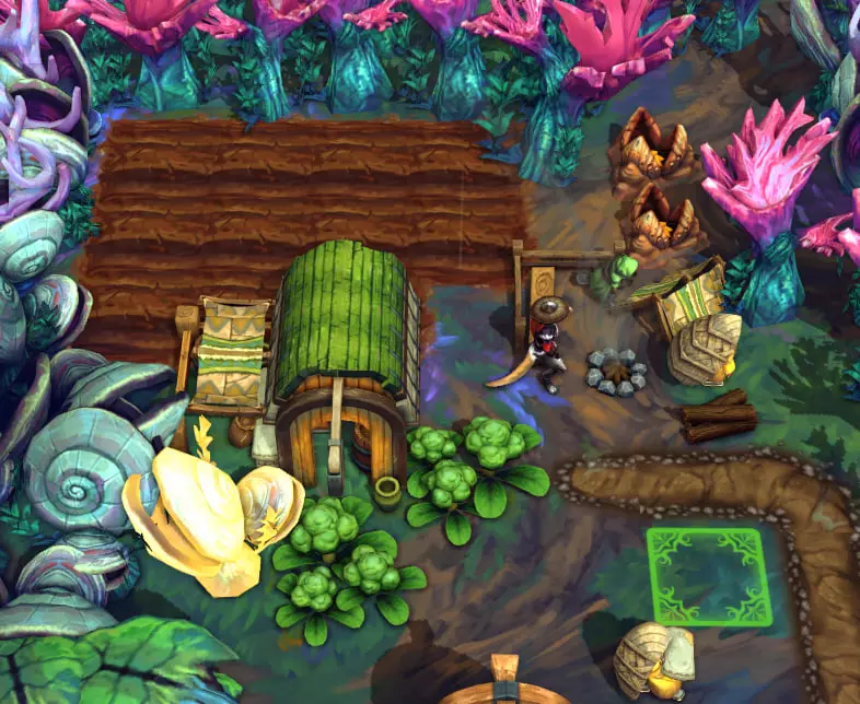 通常情况下,我们会在暴风雪期间,或者当森林对我们非常不友好时,向篝火献祭燃料。献祭的效果如下: - **木材**:献祭期间,敌对度降低50 - **煤炭**:献祭期间,敌对度降低80 - **矿石**:献祭期间,空地事件的工作速度提升25% - **油脂**:献祭期间,生产速度提升25% 一旦停止献祭资源,加成效果几乎会立即消失。如果长时间献祭资源,奖励会增加,但燃料也会“飞速”消耗在篝火上。总体而言,献祭矿产的收益非常可疑,而油料的使用则要看具体情况,所以为篝火准备好木材或煤炭吧。 篝火等级:当满足特定条件时,篝火等级会提升。随着升级,最多可以解锁3级篝火。为此,需要为我们的居民建造宿舍,并在活动区域内放置装饰品。等级越高,要求也就越多。 1级 - 提升整个定居点的士气+1,增强对腐败的抵抗力。 2级 - 提升10%的生产速度。 3级 - 提升10%的概率,使任何生产都能触发双倍效果。1级和2级升级起来并不难,所以别偷懒升级篝火——增益效果多多益善,而且反正你都要让居民住进房子里,这里可没有可怕的房贷。 关于篝火的建议:我喜欢在篝火那里放蜥蜴或者海狸。蜥蜴能给自己增加5点心情,给其他所有人增加1点心情;海狸消耗燃料的速度比较慢。最不推荐在篝火工作的角色是鹰身女妖和狐狸,我觉得它们的加成效果不太有用。 小型篝火。我们拥有的据点越多,敌对度就越低(同时也能减少需要长途跋涉到主据点工作的居民的奔波),因此建造更多据点非常有用。不过,在这些新增据点中无法再获得据点工人的加成,所以可以安排任何闲置人员到那里。但小型据点也有等级之分,提升它们的等级以获得额外的生产加成和士气加成会很有帮助。提前规划好下一个小型据点的放置位置,因为两个据点的范围在任何格子上都不能重叠。 仓库。 这里用于存放和搬运所有未固定的物品。人们会把所有东西从建筑物里搬到这里,并自行运到生产场所。在仓库中,你还可以单独标记想要追踪的资源(标记图标会出现在左上角)。 此外,还可以设置资源的最低库存量。示例:我会设置至少5块木板,这些木板永远不会被任何人拿走。所有数量超过5块的木板将用于生产和其他事务。这似乎不适用于篝火的储备和燃料。 你们离中心越远开辟空地,就需要越多的小型仓库。它们的作用是,打个比方,让来自*у*во-库库耶夫矿的海狸不用花300年时间把煤炭运到中央仓库。对我而言,最佳的小型仓库数量为:大约每2片已开垦的空地设置1个仓库。如果空地面积较小,或者是在基地中心附近开垦的,那么可以每3-4片已开垦的空地额外增设1个仓库,不过这并非强制要求。需要注意的是,据点、仓库和矿场都无法移动,一旦放置,便会固定在原地。 3.2 营地、农场、交易 营地:这里的操作很简单——指派工人,他们就会在营地的范围内收集可获取的资源。当营地的物资装满(基础容量为10)时,伙伴们会把所有东西都搬到仓库。如果你急需某种物资,甚至已经在盘算着用金币购买资源——建议你检查一下营地内部是否堆积了多余的资源。