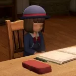 黑板上的藏宝图 此藏宝地点与另一块麦田中心的溜滑助墓碑遥相呼应。联想到溜滑助的墓志铭——自己热爱的宝物只有闪亮的小徽章和家乡的小麦田。而藏宝图将两者结合,由此推测这是溜滑助留下的藏宝图。 “呼呼!” 徽女学园餐厅内的美食班长梅姬,要么围绕在营养师朵森太太身边,要么在餐桌旁大快朵颐,上前与其对话时都能看到“呼呼!”这句台词(日文原文为“フフィーッ!”)。