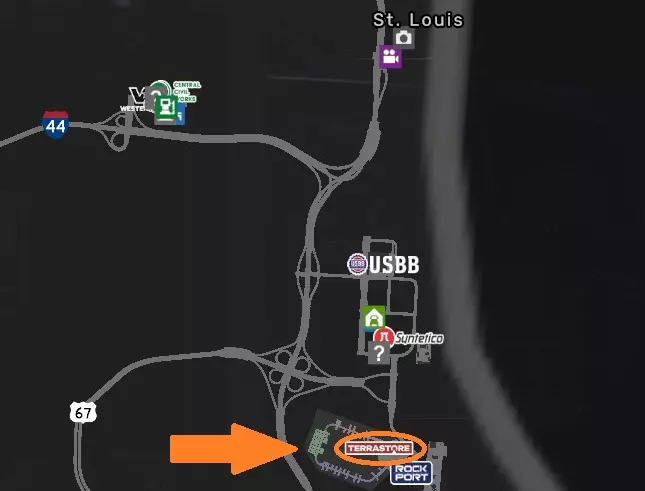 完成至少两个Terrastore地下综合体的运输任务。要达成此成就,我们需要完成两次前往Terrastore地下综合体的运输,这些综合体分布在该州的四个城市中,接下来我们详细了解一下。需要运输货物的Terrastore综合体位于以下城市:堪萨斯城(密苏里州境内的那个)、圣。圣路易斯、乔普林和斯普林菲尔德。标志及位置如下: