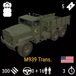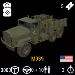 补给车(Supply Truck) 步兵部队的主要运输工具,尤其在战斗初期,小队讨论战术、选择行进方向及部署枢纽时发挥重要作用。 只有直升机和补给车能够运输建造防御工事、枢纽、火炮所需的建材,以及用于维修友军装备的物资。