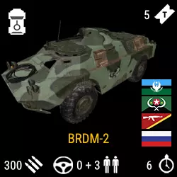 美国的MRAP(防雷反伏击车)为M-ATV(图片中所示),英国的是LPPV,加拿大的是TAPV,通常它们都被简称为MRAP。 俄罗斯的是“虎-M”(Тигр-М),它既被称为MRAP,也被叫做“虎”(Тигр)。 叛乱派系和中东联盟(MEA)没有MRAP,它们的角色由“巴达克”(Бардак,即BRDM-2装甲车)承担。在所有合法阵营(美国、俄罗斯、加拿大、英国、澳大利亚)中,装甲车至少有两种变体:一种是配备封闭式机枪的装甲车,机枪由驾驶舱内操控,要击杀机枪手只能摧毁装甲车本身;另一种是开放式装甲车,机枪手位于驾驶舱外部,很容易通过爆头将其击杀。混乱(BRDM-2)装甲运兵车(APC):现实中,这类车辆用于在危险区域运送重要人员和部队,但在游戏中却被当作步兵战车(IFV)使用,即用于火力压制敌方的步兵支援车辆。而且其表现非常糟糕,例如“斯特赖克”装甲车能轻松承受BTR-82A装甲车正面发射的30毫米炮弹,这与现实完全不符,实际上一发炮弹就会让它彻底报废。一个巨大的敞开式洞口,而船员们不得不从内部衬板上剥离下来。这只是矿井中众多不切实际的场景之一,因此不建议你在这款游戏中期待任何真实感。装甲运兵车(APC)有两种类型,轮式和履带式。