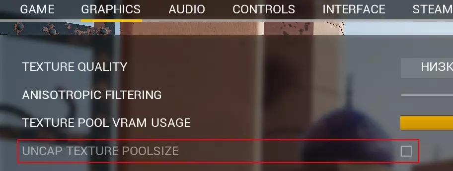 玩家们经常抱怨肥皂纹理加载不出来。这是由于显卡显存不足导致的,解决方法非常简单,只需开启内存中纹理池的限制解锁功能,启用此选项即可: