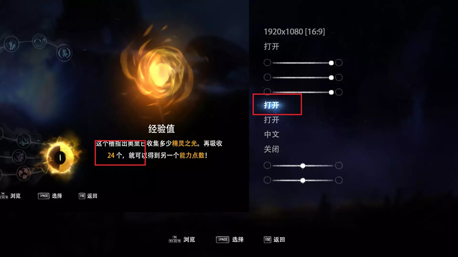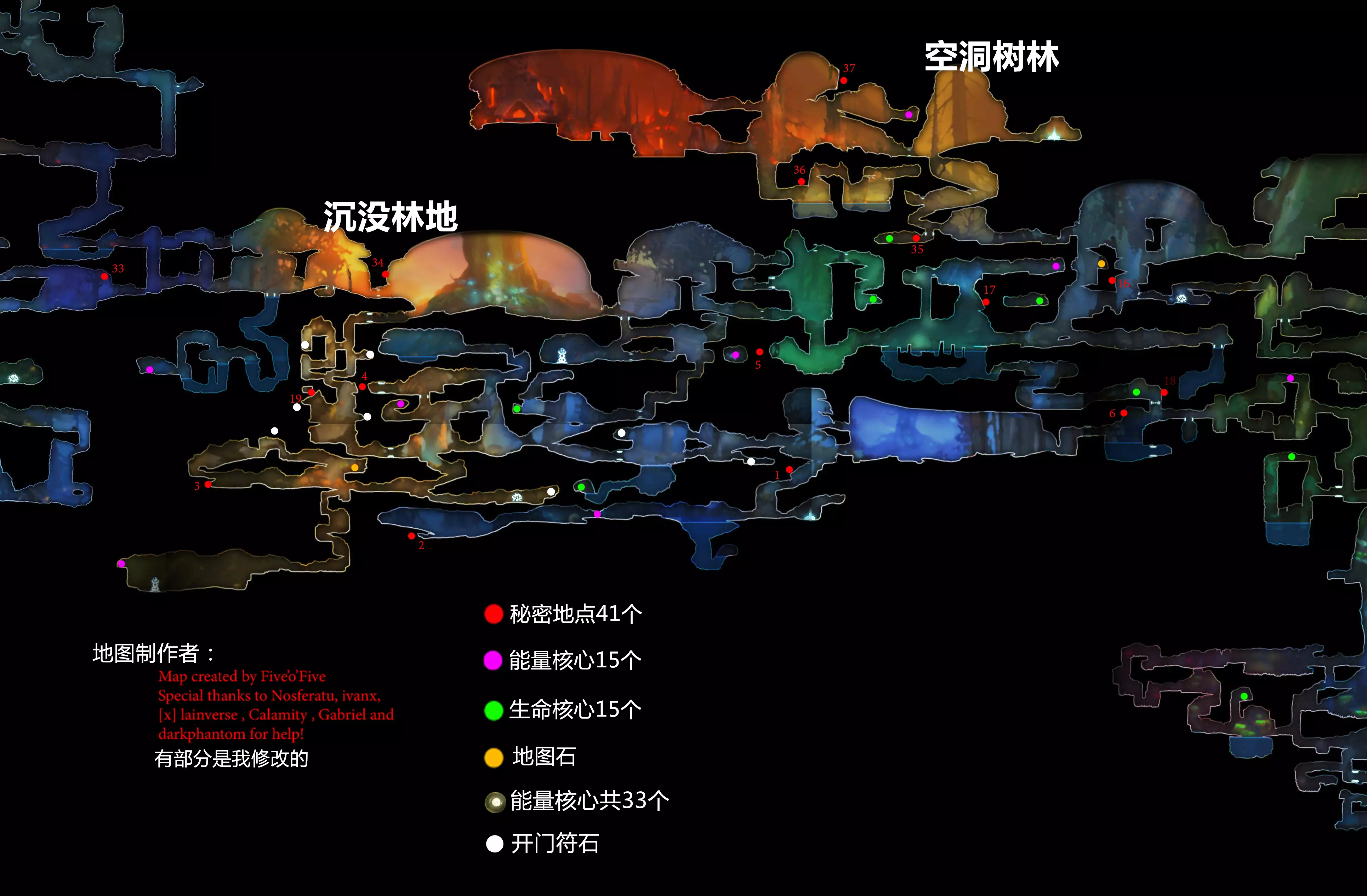 (地点参考成就part2)33个能力核心,精灵之光的数量未知……Orz。后面两个与成就无关,所以没有仔细数,毕竟技能在任何地方都能刷。如果有人知道具体数量,可以留言告诉我。