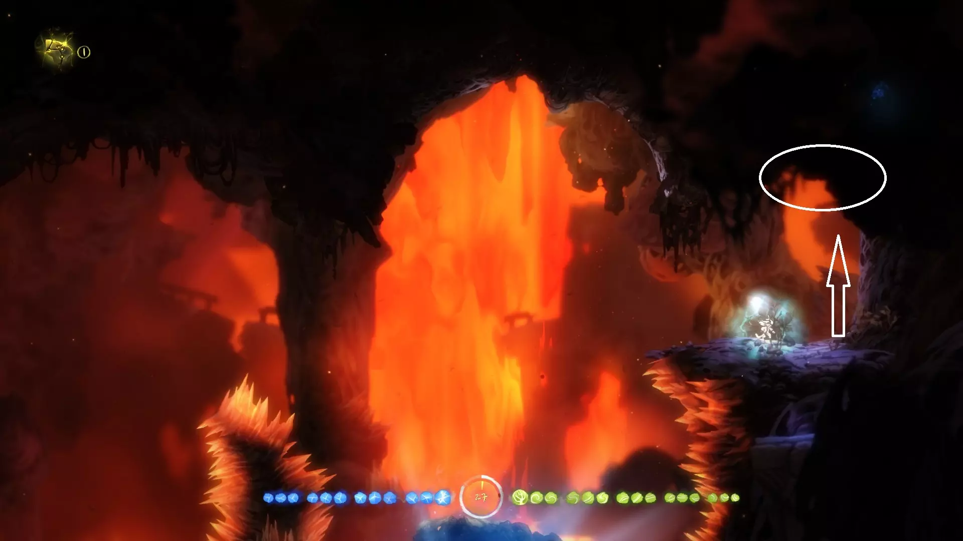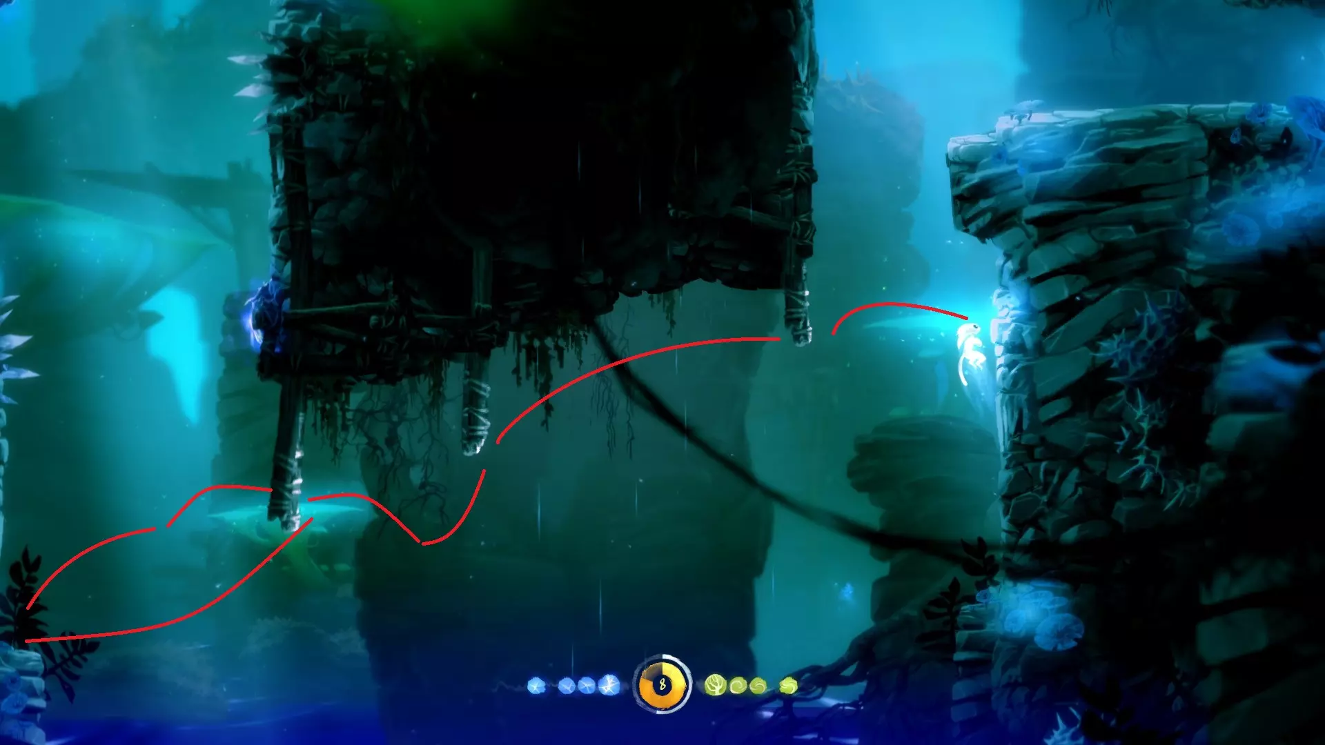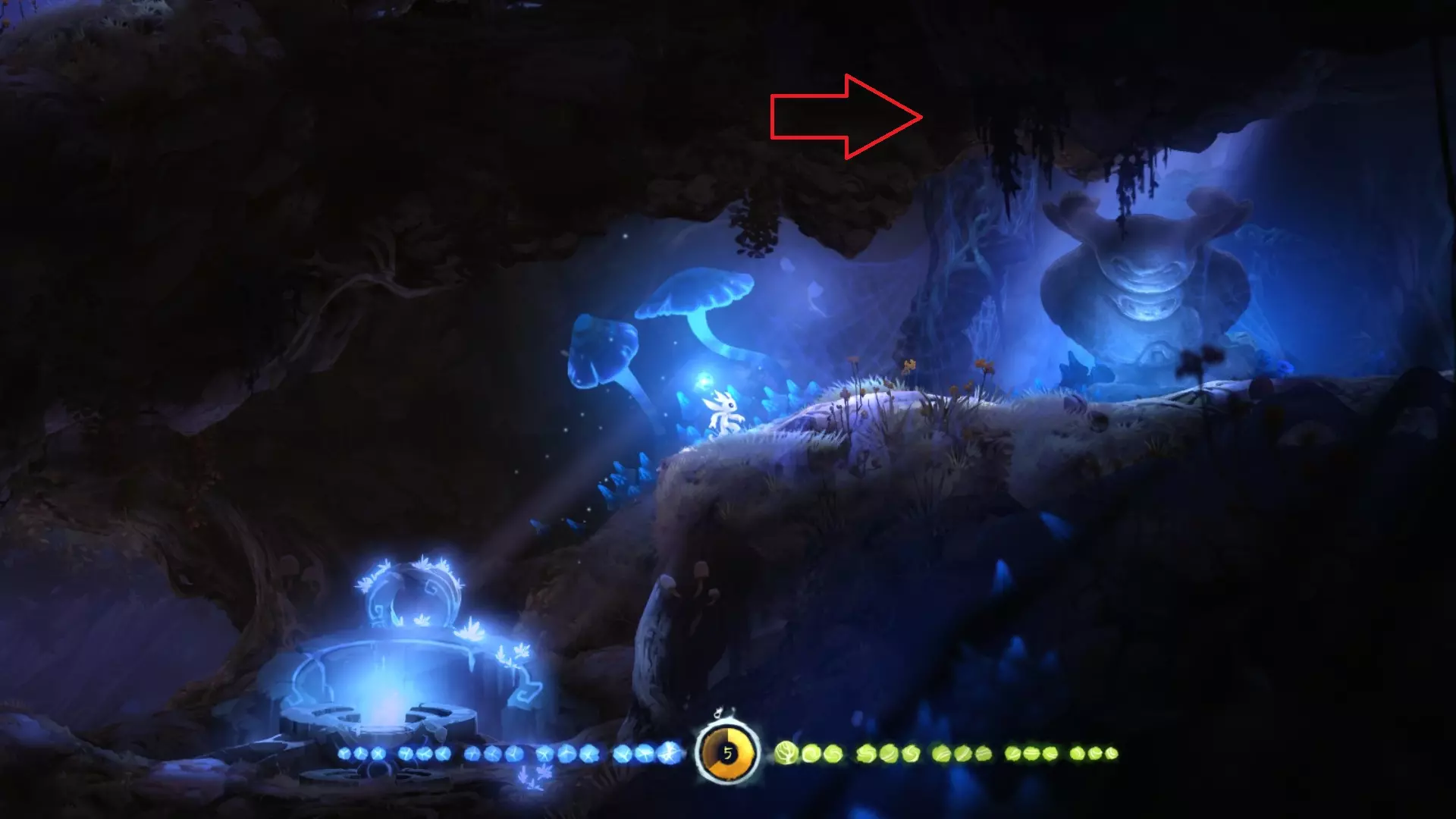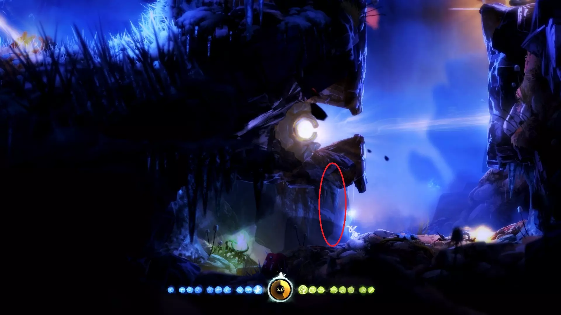 允许奥日像投掷手榴弹那样扔出一个蓝色能量球,该能量球在落地或碰到物体后便会炸开。使用时需先划定抛物线,随后蓄力、摆臂并抛出! 整个地图中存在部分收集品和解谜内容需要运用此能力。