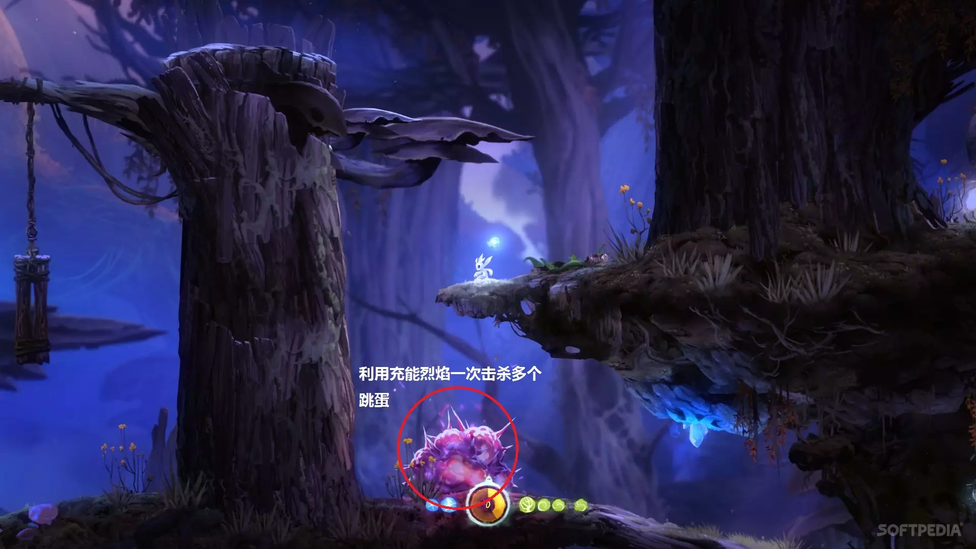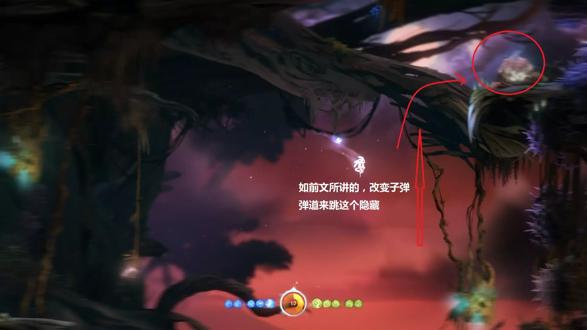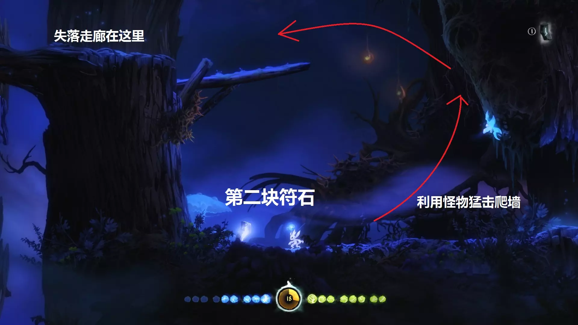 关于改进 在墙壁上进行充能跳跃时,可以通过上下键调整弹射角度,同时会显示一条指向光线。 彩蛋 《奥日与黑暗森林》中的彩蛋十分有趣。当初攻略发布时就想制作相关内容,但因考试(其实是拖延症发作)耽搁了很久,现在为大家补全。探索游戏中的彩蛋也是一大乐趣。 参考以下“Easter Egg Hunt!”“Fun Little Easter Eggs”及部分彩蛋视频: 精!奥日里面居然还有这些不为人知的彩蛋!by:PlayerBry 彩蛋一:奥日变色