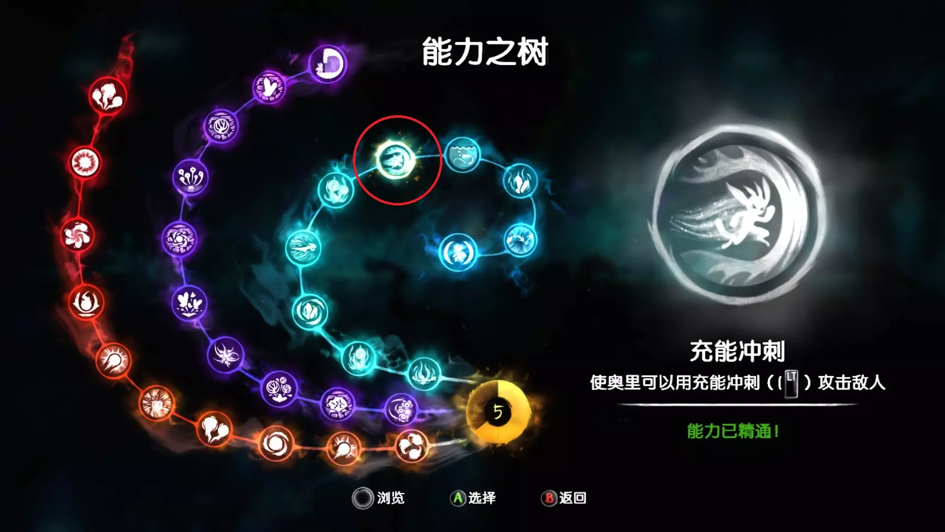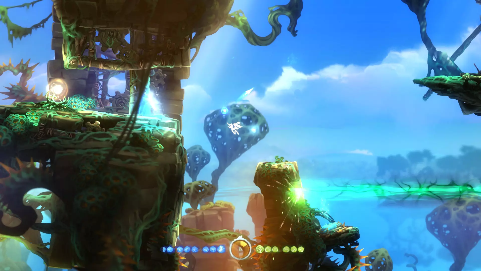 同时该技能新增了升级选项——【空中冲刺】与【充能冲刺】。 【空中冲刺】可使奥日(Ori)在空中进行瞬间移动。
