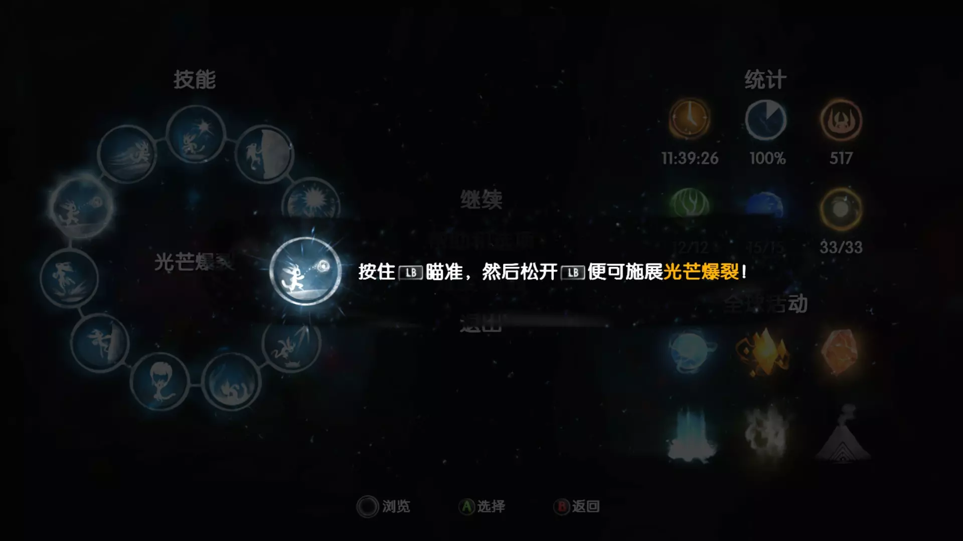 技能介绍·九大主体技能 这些技能只能通过远古之树解锁,属于流程类技能。游戏中部分隐藏的收集要素需要预先习得相应技能后才能解锁。 图标 名称 按键 介绍