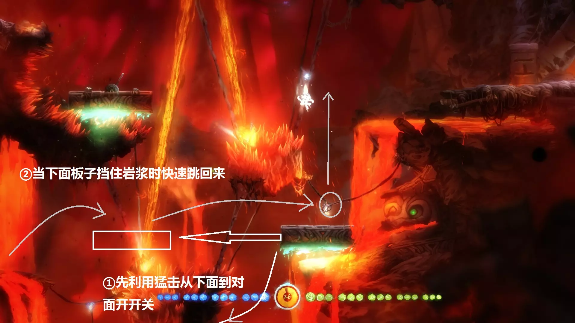 正确利用怪物可以拿到绝大多数的隐藏,而且在速通中,引怪跳剧情、跳障碍都是必不可少的操作。 困难关卡三:银之树右侧谜题 终于到大家的噩梦了-.- 这个谜题之所以单独拿出来讲,是因为这里还涉及一个隐藏要素。