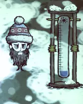 注意到屏幕变暗了吗?出现了红腹灰雀?蜜蜂都躲回蜂巢里了?希望在霜冻来临前,你已经准备了满满一冰箱的炖肉和冷冻浆果。菜园和蜜蜂将停止运作:唯一的食物来源是野味和你还没来得及采摘的浆果。如果不想被当地的“圣诞老人”抢劫,就不要过度捕猎野味。在雪还没下之前,建议你到周边地区去寻找冬季猛犸象(外观区别在于毛色)。从它身上可以获得很棒的象鼻,适合用来制作冬季外套。 冬天。第二天