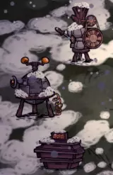 我们有什么多余的东西吗?什么东西几乎随处可见?不,树木之后会派上用场。首先收集大约60份草、50根树枝和12朵花。花要立刻用来制作花环。别忘了收集一些石头,一开始5块应该就够了——我们不是需要斧头吗?除了建筑材料,还要收集胡萝卜和浆果——在这里食物永远不嫌多。 最好在茂密的森林里过夜。如果附近没有这样的地方,一片由几棵高大树木组成的区域也能凑合……但森林更好!那么,在一夜(以及接下来的一天)里,你需要收集大约100根原木(90根也够用)。别忘了烧掉两三棵松树,以获取20单位的煤炭! 有趣的事实:第一天你几乎不会感到饥饿(除非傍晚/夜里肚子可能会咕咕叫)。 重要提示:猪是廉价的劳动力!它们既可以作为优秀的伐木工,也能充当保镖。它们的报酬是肉类(如果尝试给它们植物性食物,你会得到粪便)。 第三天 好了,50%的任务已经完成。现在我们需要石头,大量的石头,65单位(我稍微估算了一下,留点余量)。还有16单位的黄金。在寻找石矿场时,别忘了记录下遇到牛群的位置(以及其他有趣的地点,但牛群是优先项)。如果背包满了,可以把几堆木头暂时放在树下。不过之后可别忘了回来拿! 重要提示:小心火源!扔在篝火或燃烧的树木附近的物品可能会着火! 第四天 有石头了吗?有木头了吗?太好了!是时候建立营地了。首先要搭建营地篝火——总不能让我们都用木头生火吧!之后需要建造科学站。完成了吗?接下来立刻建造炼金站!好了,现在需要放置3个箱子、2个大锅、4个肉干架和避雷针(好在材料足够)。同时还要制作长矛、背包和铲子。16块石头和40份草料放入一个箱子中,剩余的木材将用于制作木板。在“生存”栏目中找到并制作石头熔炉,以及木质盔甲。 重要提示:熔炉最好放置在彼此靠近且光源附近的位置。 第5天至第9天 任务一:食物会变质?这可不是什么好事,除非你是个毫无感情的机器人,吃什么都无所谓。希望在附近的墓地(你们在寻找水牛的时候应该已经发现它了吧?)能找到冰箱所需的机械装置。最好不要在那些“国际象棋马”(Chess Knights)附近冒险——死亡不在我们的计划范围内。 重要提示:通过采摘花朵可以轻松恢复理智。当你们挖掘坟墓时,别忘了这一点! 如果找到冰箱,那就非常、非常好了。如果它不在……那我们就得非常频繁地补充补给品了。 第二个任务:现在我们需要蛛网。在附近寻找蜘蛛巢穴,并连同里面的居民一起摧毁它们。目前20个单位就够了。别忘了穿上盔甲!