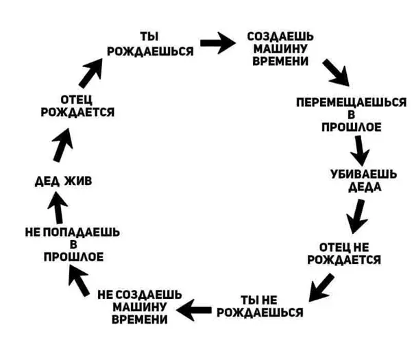 3. 光速理论 相对论告诉我们,当物体的速度接近光速时,其时间相对于静止物体而言会变慢。这种效应被称为相对论性时间膨胀,它不能被视为真正的时间旅行,因为这只是相对论中的效应之一。就像神经网络理论一样,光速理论只允许向未来旅行。当物体以接近光速的速度运动时,以该速度运动的人所测量的旅行时间,总是小于静止的人(更准确地说:没有经历加速度的人——“双生子佯谬”*)所测量的时间。双胞胎佯谬是一种思想实验,旨在证明狭义相对论(СТО)的矛盾性。根据狭义相对论,从“静止”观察者的角度来看,运动物体的所有过程都会变慢。 从留在家里的人(“宅男”)的角度来看,运动中的旅行者的时钟时间流逝变慢,因此当旅行者返回时,其时钟应该会比留在家里的人的时钟慢。另一方面,在旅行者的参考系中,地球在移动且速度在加快,因此居家者的时钟应该会变慢。实际上,两者是等价的,所以返回后他们的时钟应该显示相同的时间。 4. 快子相对论 快子是一种假设的粒子,它在静止状态下以光速运动。由于 tachyons(快子)的运动速度超过光速,因此从理论上讲,借助它们可以向过去传递信息。证明这种粒子存在的主要问题在于它会违背因果律。如果将快子发送到某个反射面,那么它反射后会在发送之前就回到发送地点。同样,利用它还可以引发“祖父悖论”*,这会导致逻辑问题。 尽管存在这些理论上的问题,人们仍尝试寻找这种粒子。2011年9月,欧洲核子研究中心(CERN)宣布,他们成功将陶中子加速到超过光速。但后来发现,这只是传感器的故障。祖父悖论是指一个人通过时光机回到过去,在其亲生祖父遇见其祖母之前将祖父杀害。其结果意味着,该时间旅行者的其中一位父母,进而连时间旅行者本人,都将不复存在。也就是说,最终他无法进行时间旅行,而这反过来意味着他的祖父会存活下来,他也会出生,这又会让他能够进行时间旅行并杀死自己的祖父。因此,每一种可能性都意味着否定其自身,从而形成了一个逻辑悖论。
