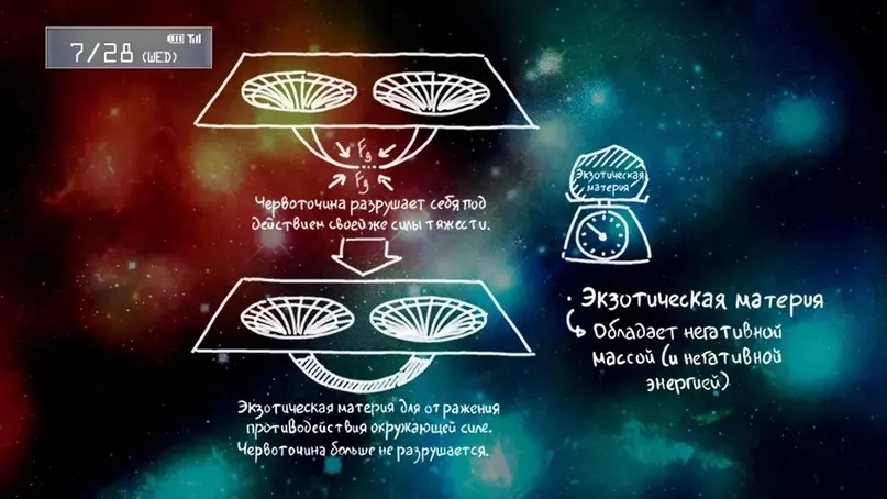 “但事情并非如此简单。一旦隧道开启,虫洞就会受到超强引力的作用而坍缩。因此,我们需要某种东西来抵消引力的影响。”