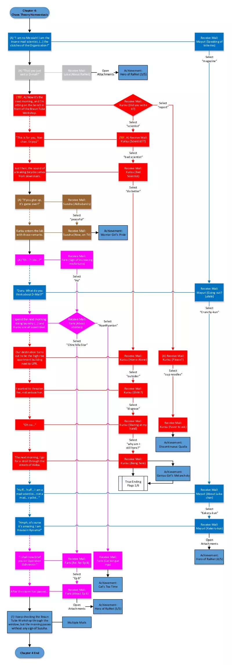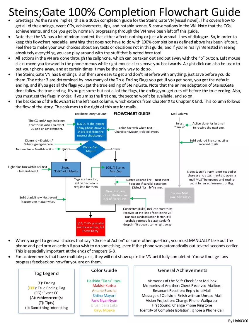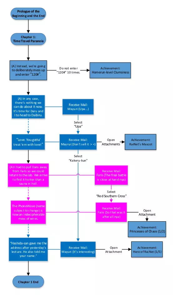 修改记录 2016年9月9日:添加了原始PDF的链接。 2020年11月30日:感谢Boss Hogg提供的信息:“从二周目开始,在部分对话期间会出现一个类似天线的红色小图标。当该图标出现时,意味着可以使用手机**主动呼叫他人**,而无需等待游戏给出明确提示。 非常令人困扰的是,这个图标会被‘跳过’功能忽略,这意味着你**必须准确知道它出现的时机**。” (需要测试)Hero of RaiNet成就似乎可以在一次或多次通关中获得,还有一些与其他成就相关的邮件:https://www.playstationtrophies.org/game/steins-gate-eu/trophy/113308-Hero-of-RaiNet.html