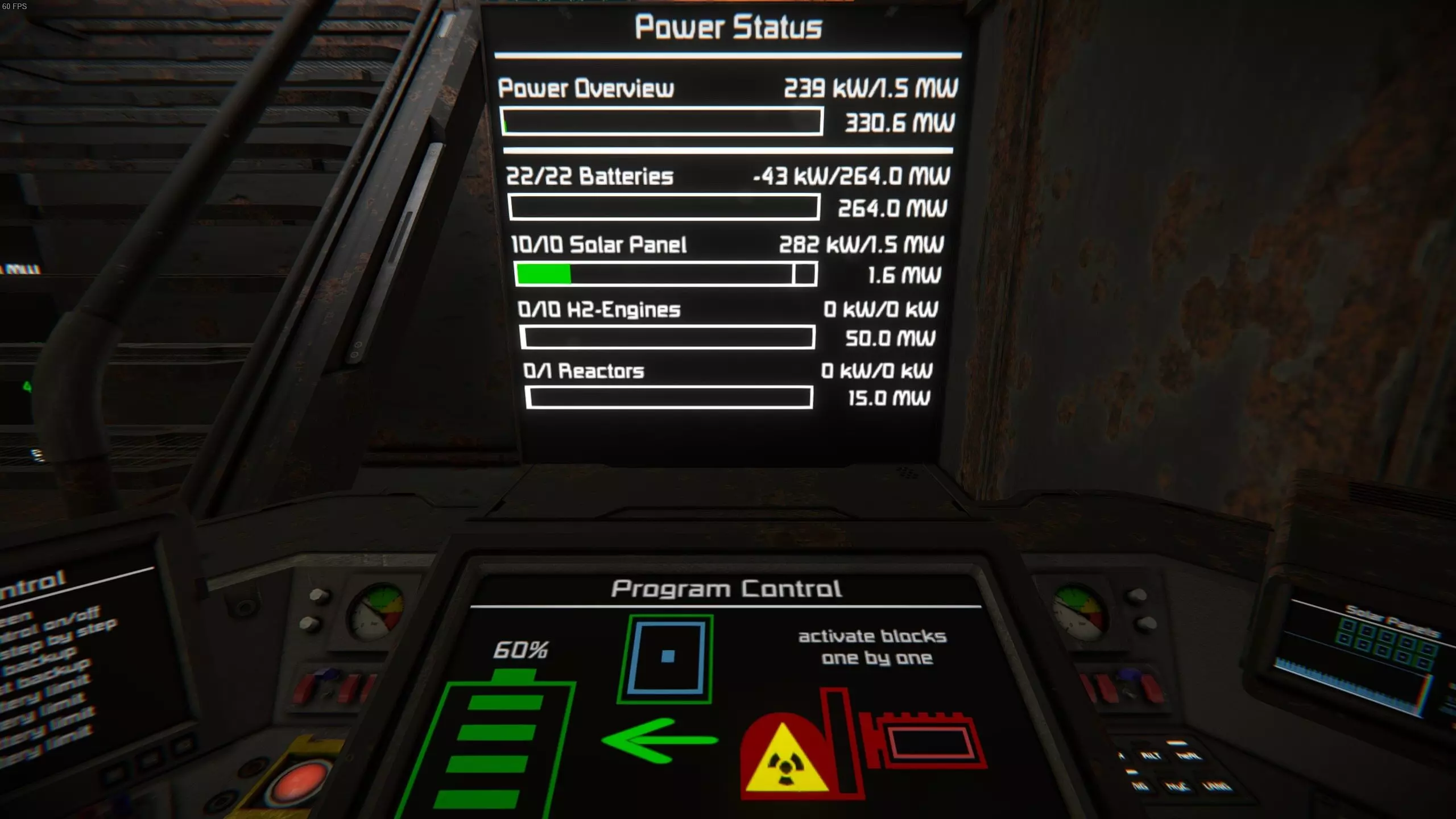 电源控制程序 v1.1(作者:AlfRomeo80) 此脚本可控制你的空间站或载具的电力。首先,你可以使用显示屏查看不同类型发电模块的发电量。 然后,你可以通过控制座椅或驾驶舱来控制这些模块,包括开关不同模块、更改电池充电状态等。