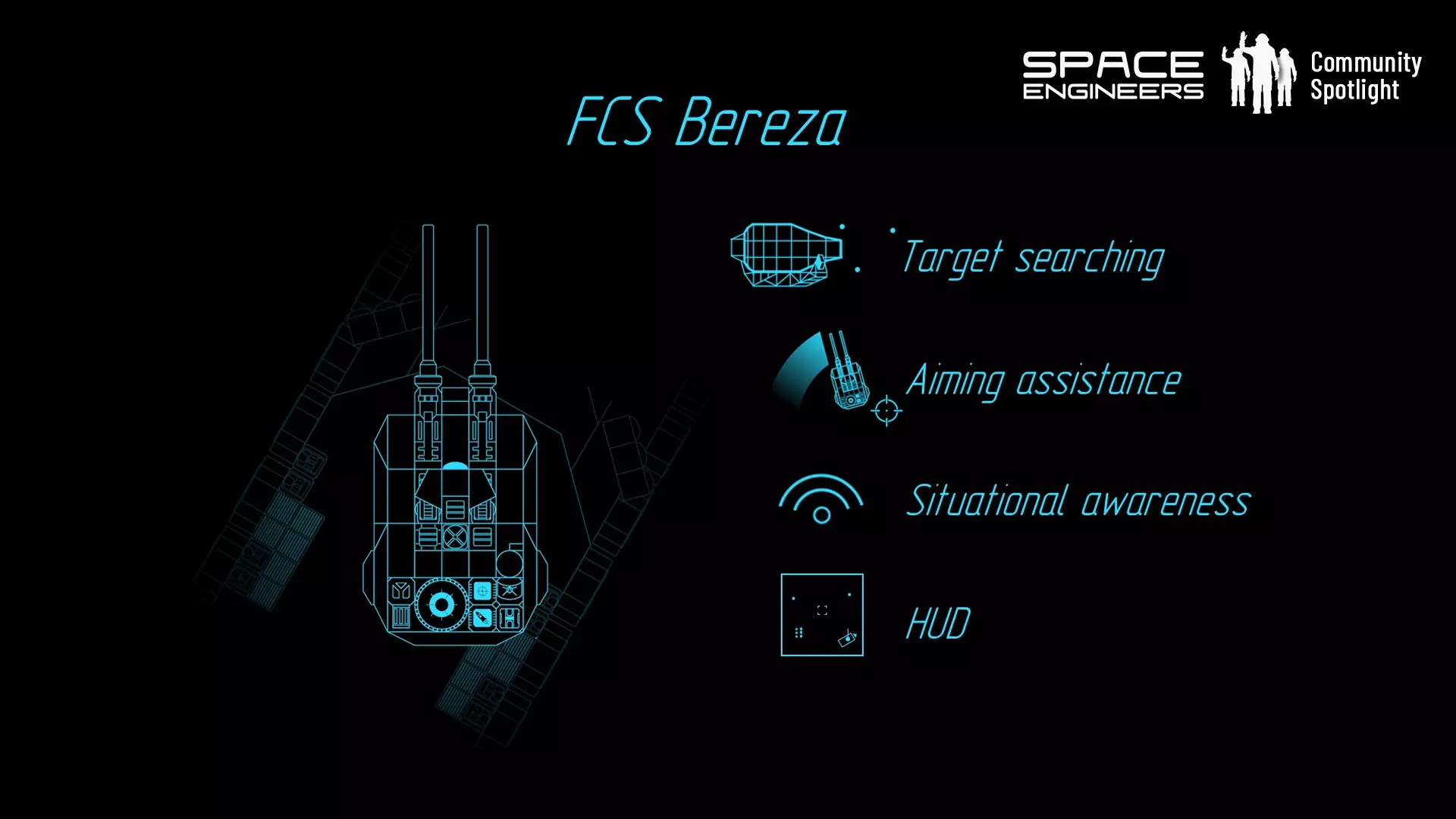 FCS Bereza(作者:Xejijikot) 此脚本旨在通过鼠标控制坦克炮塔,包含先进的传感器与通信系统,并能在显示器上以HUD风格可视化信息,从而提供态势感知。