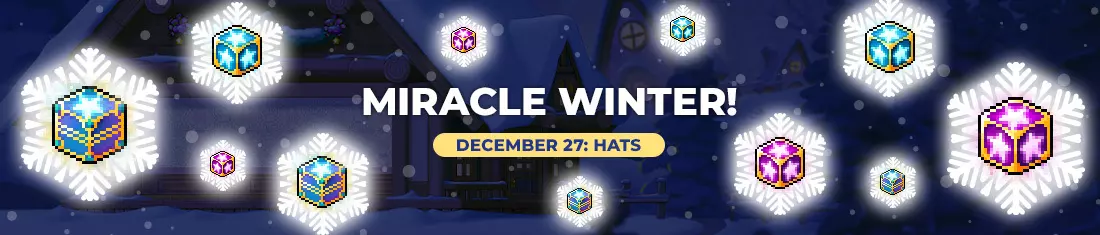 《冒险岛》奇迹冬日活动再度开启!整个冬季期间,特定部位装备将启用奇迹时间,助你获得一次装备升级成功率翻倍的机会! **奇迹时间 - 帽子装备** 活动期间: - PST(UTC-8):2025年12月26日(周五)下午4:00 - 12月27日(周六)下午3:59 - CET(UTC+1):2025年12月27日(周六)凌晨1:00 - 12月28日(周日)凌晨12:59 - AEDT(UTC+11):2025年12月27日(周六)上午11:00 - 12月28日(周日)上午10:59 2025年12月27日(周六)当天,所有世界的岛民们将迎来帽子装备的奇迹时间!全天都可使用魔方强化你的头盔、头巾、皇冠、 stetson、帽子、无檐帽及其他各类头部装备,提升装备升级成功率!