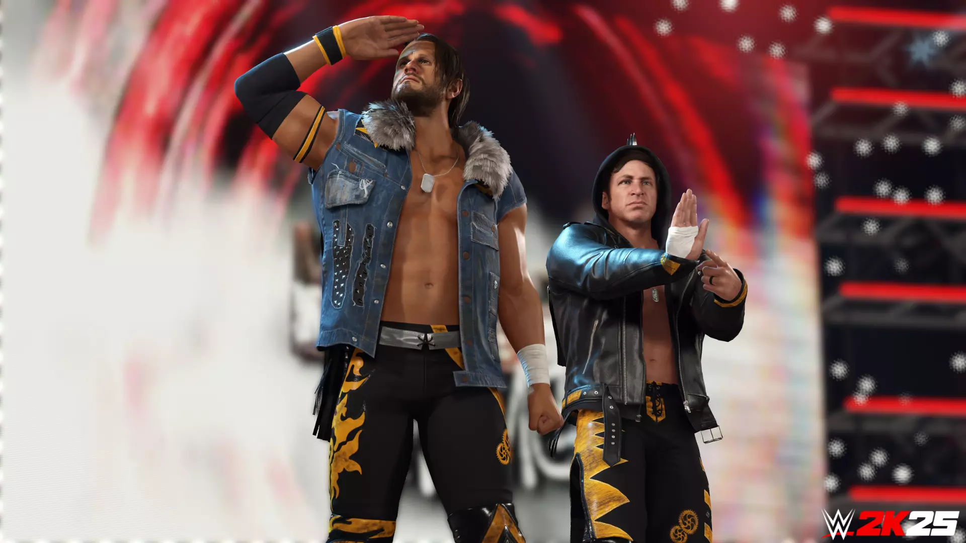 “新浪潮组合包”中还将包含第五位可玩角色,我们此前已将其预告为一位特别的名人嘉宾。关于这位神秘角色的更多详情将在未来几周内公布,请保持关注。 克里斯·萨宾与亚历克斯·雪莱的加入还引入了“汽车城机枪”组合的双打入场动画,当选择这两位超级巨星组队时将自动触发该动画。