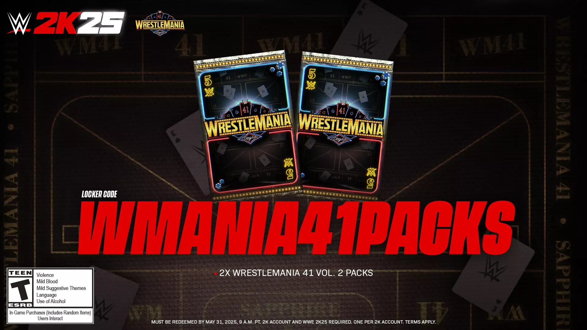 *“新浪潮组合包”可单独购买,且已包含在《WWE 2K25》赛季通行证和场边通行证中。 **在线游戏(包括“我的阵营”模式)需要互联网连接和2K账户。主机在线游戏需要单独的付费订阅。适用条款。 ****储物柜代码必须在2025年5月31日上午9点(太平洋时间)前兑换。需要2K账户和《WWE 2K25》。每个2K账户限用一次。适用条款。