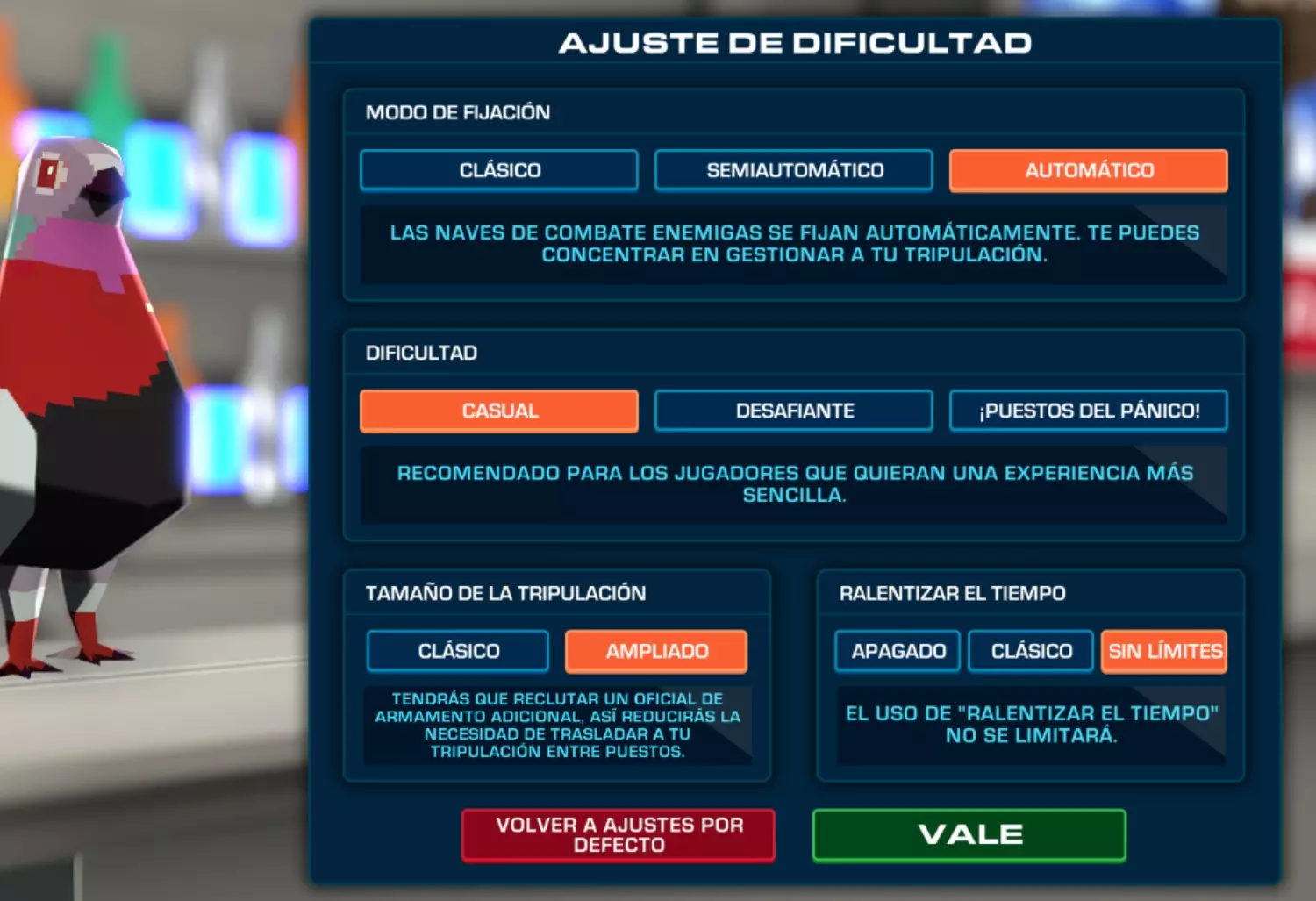 一篇关于游戏机制的指南,整理了成就、技巧和注意事项(西班牙语版) :) 简介 大家好!欢迎来到我的这款特别的太空冒险小游戏指南! 我制作本指南是为了整理自己100%解锁所有成就的过程,并记录一些游戏技巧和不太明显的机制方面的经验。 如果有任何疑问或建议,请留言,我会尽快回复。 游戏中有容易错过的成就,并且会自动保存,因此无法通过存档来尝试不同路线后再回到之前的存档点。简而言之,你的大多数决定都是永久性的(除非你是作弊的黑客,哈哈)。该游戏没有与难度相关的成就,因此你可以在休闲难度下游玩并解锁所有成就。 成就计数器独立于战役模式,所以如果你在一个存档中摧毁了20架敌机,在另一个存档中摧毁了30架,那么摧毁50架敌机的成就就会解锁,所有使用计数器的成就均是如此。 如果你愿意,之后可以使用Xbox手柄游玩,但本指南默认我们将使用键盘和鼠标。 由于我有视力问题,我将分辨率调整为1280x720,以便让所有内容看起来更大一些。 语言:如果你的游戏未设置为西班牙语,只需点击屏幕右侧的“Change Language”(更改语言),然后选择“Español”(西班牙语)即可。游戏说明与机制 教程会教授最基础的内容:移动视角、移动船员、在飞船穿越太空时使用目标模式引导飞船、通过传送门进行超空间跳跃,以及引导飞船射击。教程还会教你使用牵引光束(标有磁铁图标的位置)、使用Tab键加速旅行时间,以及如何让船长驾驶飞船起飞和降落。 但还有一些内容教程并未提及。 例如,你需要注意,飞船会直接朝着你选择的目标方向移动,而不是在目标模式下你瞄准的方向。
