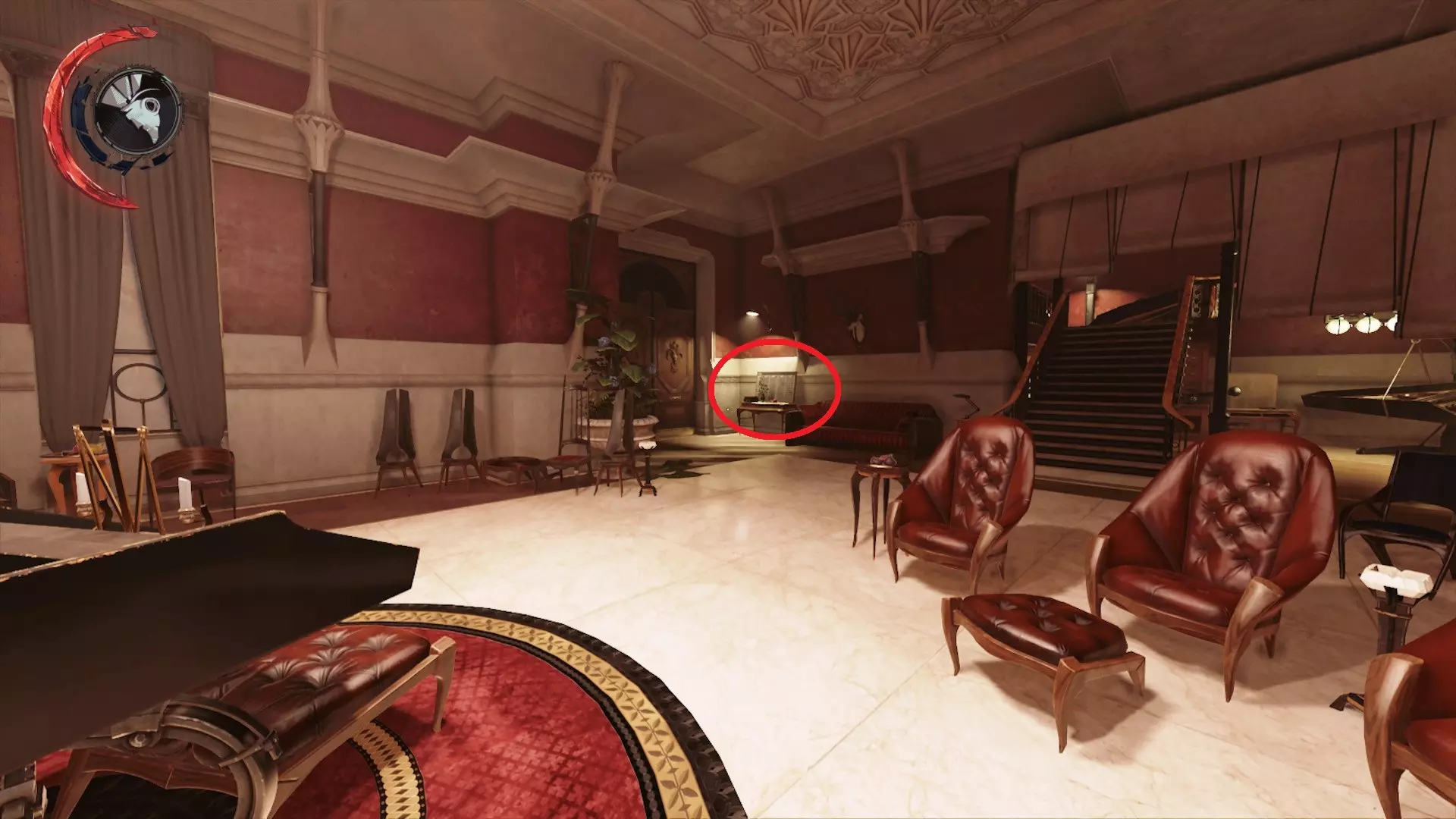 骨瓷之刃 任务:“皇家陈列馆” 位置:陈列馆建筑内 纪念品位于皇家陈列馆四楼的一个小玻璃展示柜中。可将布丽安娜·埃什沃思的办公室作为参考点,该办公室就在此处正下方。