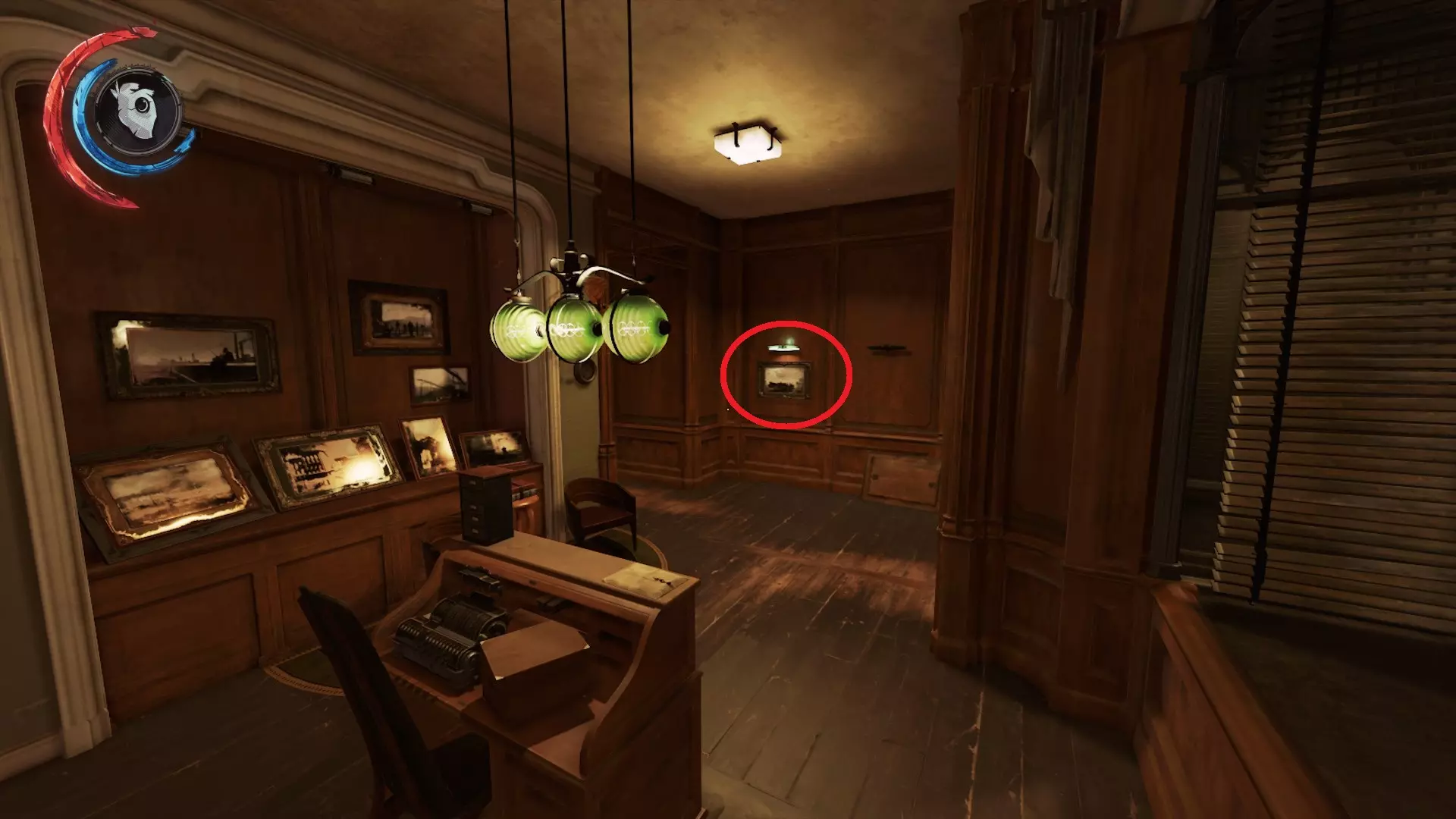 画作 - 驶向船坞的小船 任务:“尘土街区” 位置:通往守望者前哨站路上的商店 在保罗落脚的“女巫之手”酒馆与守望者前哨站之间,有一片小型中立区域。该区域内有一家大部分保持原样的锁着的商店。打破入口左侧的木百叶窗进入店内,从墙上取下画作。