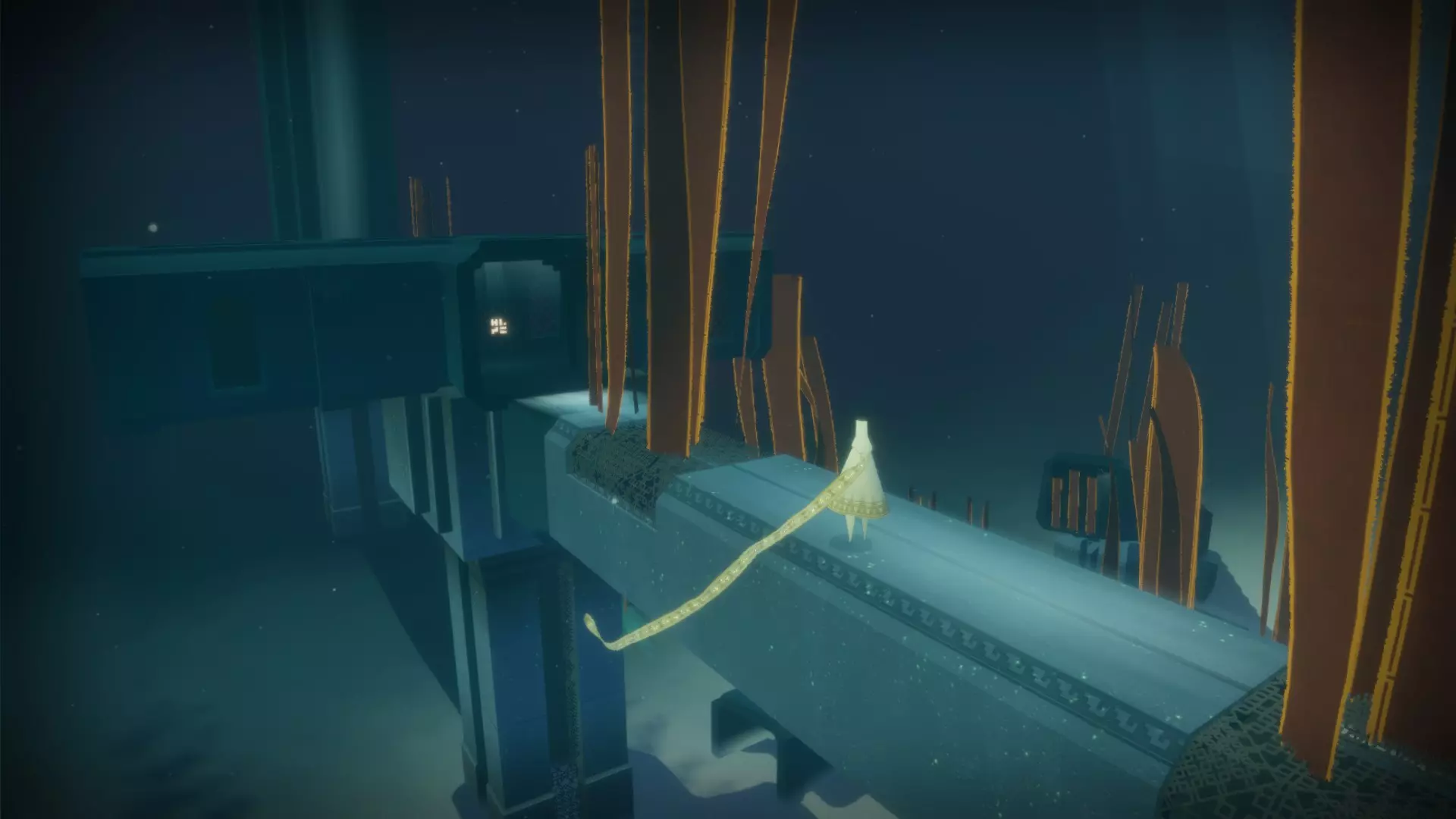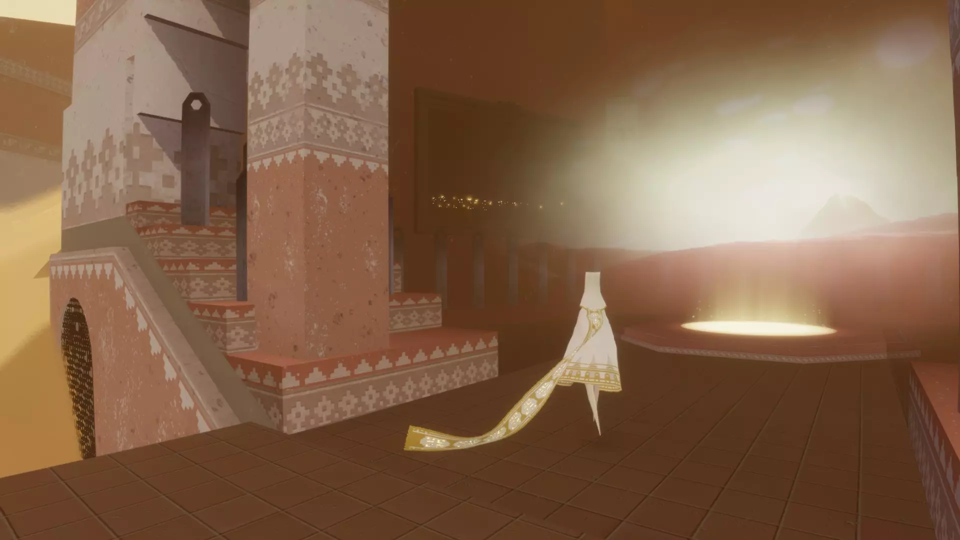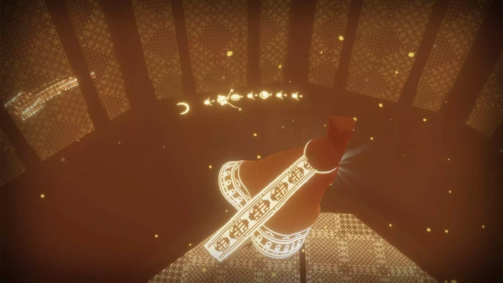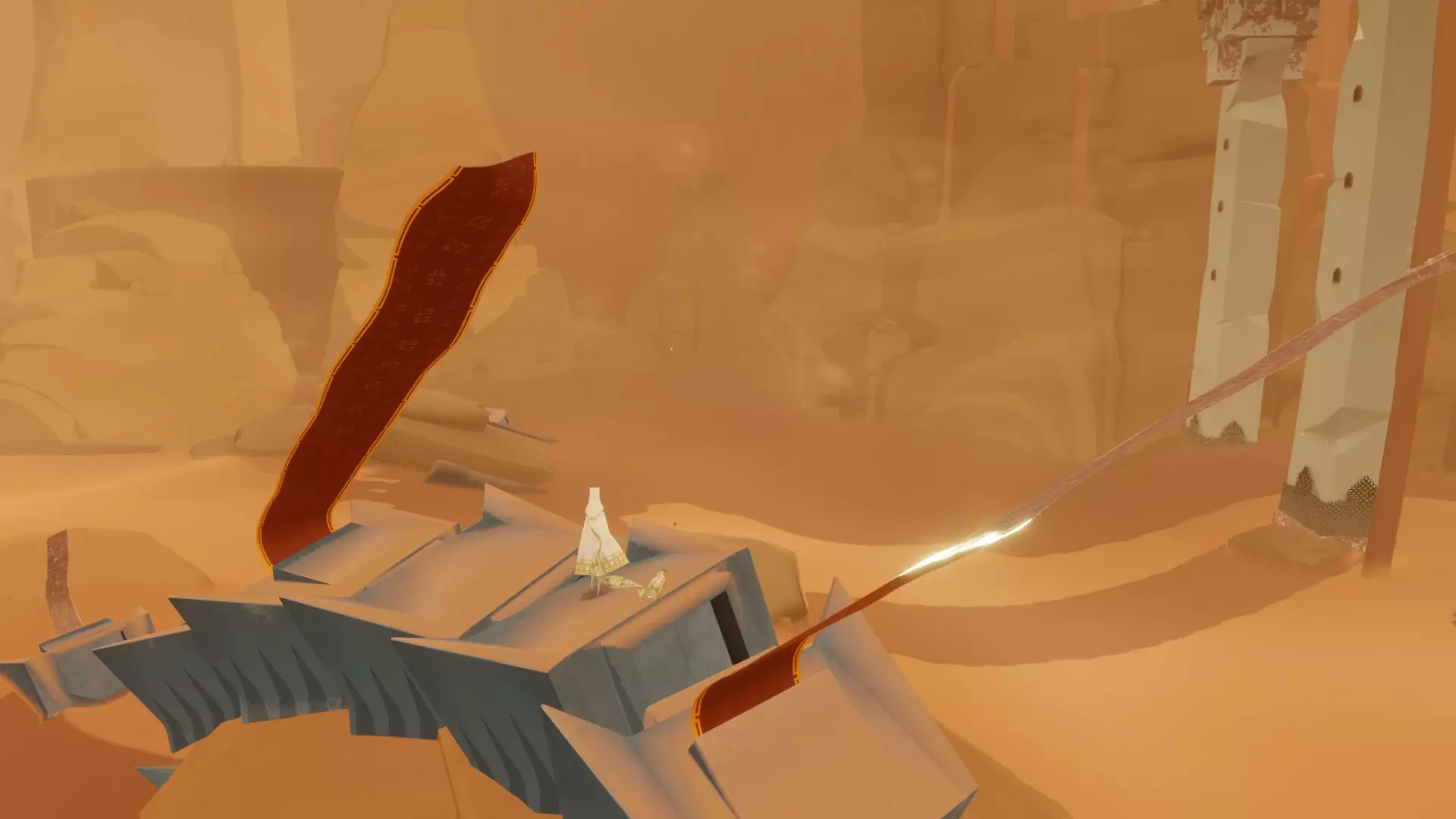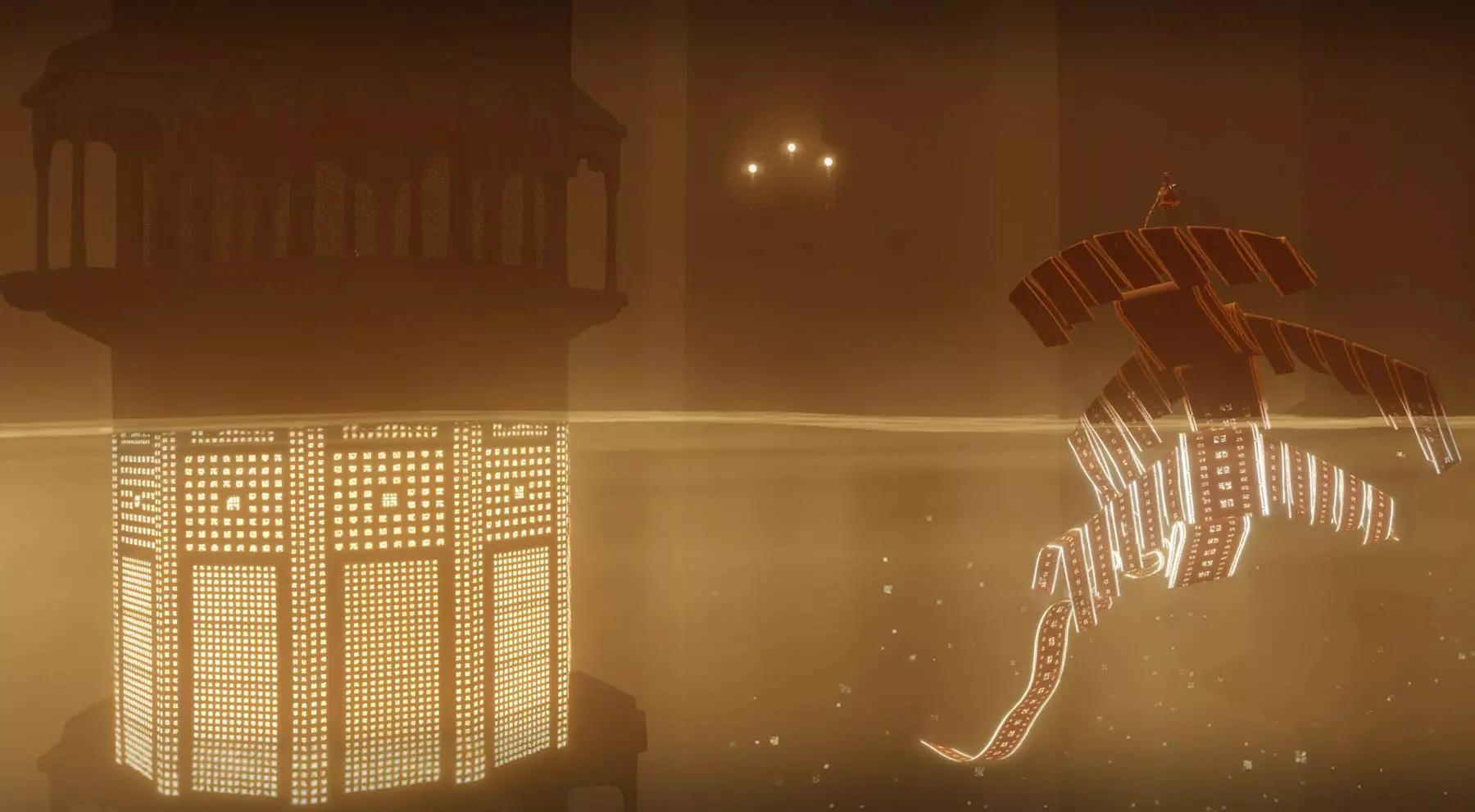 超越 在一次或多次旅程中收集所有发光符号。 总共有21个独特的符号,随着你获取这些符号,你的围巾会变得更长。 包含符号的章节如下: 传送门:3个 桥梁:3个 沙漠:4个 水下城市:3个 地下:4个 神庙:4个 雪地:0个 天空:0个 完成游戏后,你可以使用章节选择功能查看在哪些章节收集或遗漏了符号。前往本图片中已收集符号的位置。