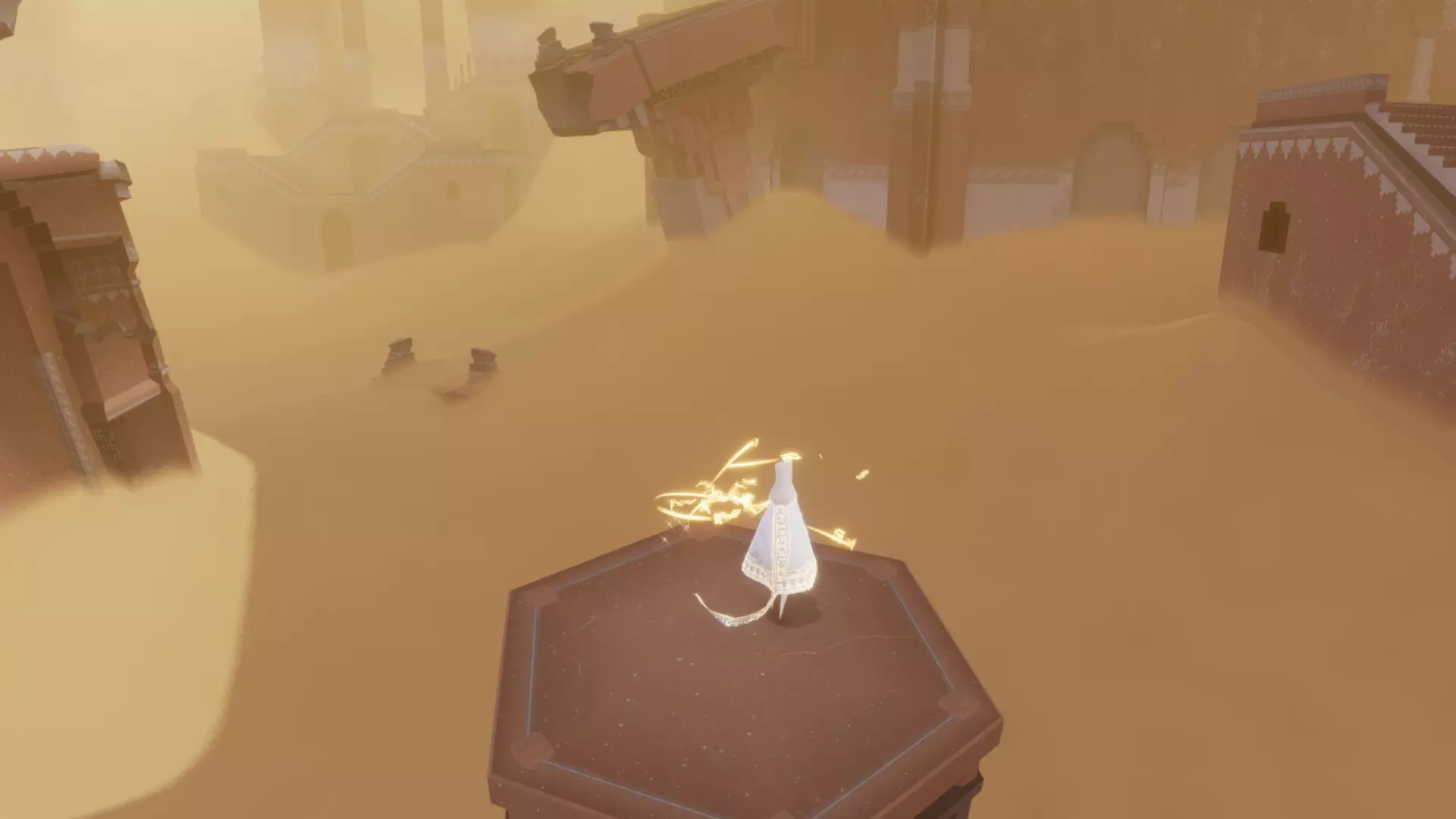 在沙暴中央的塔顶到达顶部后,看向左侧周围以找到另一个符号。