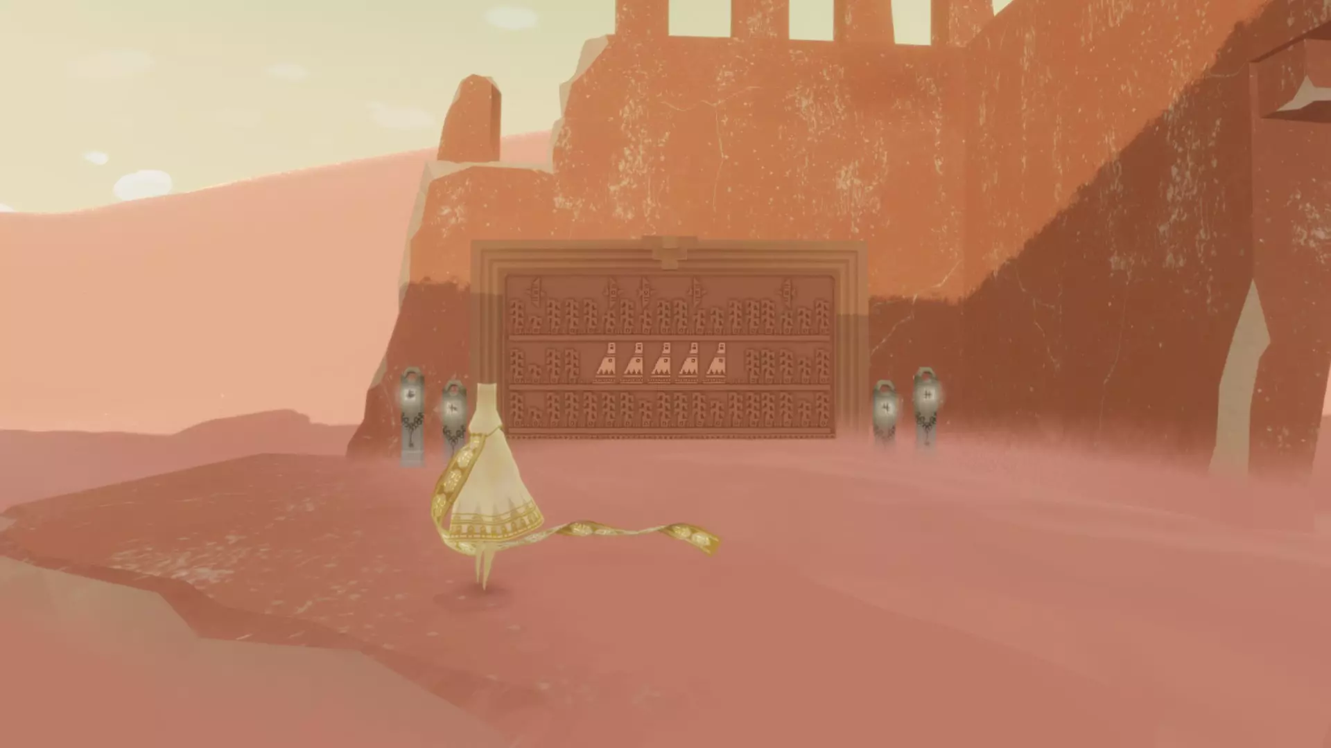 第一个符号在序章开始时就能找到。拿到第一个符号后,游戏会引导你继续前进。但你可以选择向右走,沿着沙丘前行,找到一个小型圣坛,那里就供奉着这个符号。