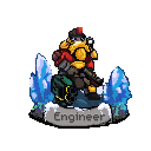 “在小圈子里最聪明的人,工程师依靠自己的小玩意儿生存:炮塔、无人机,还有大量等离子能快速解决任何敌人” 基础属性: ❤️ 最大生命值:130 暴击率:5% 暴击伤害:150% 经验值:+5% [TO员工] +⌛️(可使用带有⚙️[制品]标签的武器,+⚙️[制品] 10%伤害,+⚙️[制品] 10% reload speed) 初始武器:轻型机枪平台 技能等级: 1) +3%经验值,+⌛️ 5%持续时间 2) +6%经验值,+⌛️ 9%持续时间 3) +8%经验值,+⌛️ 12%持续时间 4) +9%经验值,+⌛️ 14%持续时间 5) +10%经验值,+⌛️ 15%持续时间 [工匠] + (初始等级武器3,+10%经验值 初始武器:Auto 210“野猪” 熟练度等级: 1) +3%经验值,+7%收集范围 2) +6%经验值,+13%收集范围 3) +8%经验值,+18%收集范围 4) +9%经验值,+22%收集范围 5) +10%经验值,+25%收集范围 [爆破专家] (可使用带有[爆炸]标签的武器,+[爆炸]⟷20%爆炸范围,+[爆炸]20%装填速度) 初始武器:Deepcore RGM 熟练度等级: 1) +3%经验值,+3%伤害 2) +3)+6%经验值,+6%伤害 4)+8%经验值,+8%伤害 5)+9%经验值,+9%伤害 6)+10%经验值,+10%伤害 矿工(БУРИЛЬЩИК)