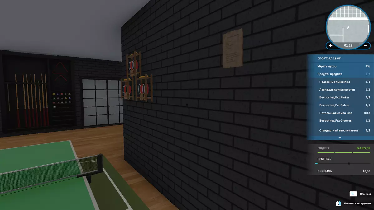 任务“技艺新面孔”。寿司食谱。出售乒乓球桌旁的画作,食谱在墙上。