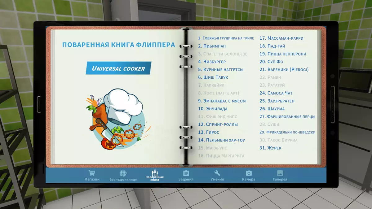 •工作“披萨幸福”。玛格丽特披萨食谱(该食谱或之前的寿司食谱,将是你获取成就的最后一个食谱,具体取决于你先完成哪项工作)。出售登记台,那里有支付电脑,食谱在地上: