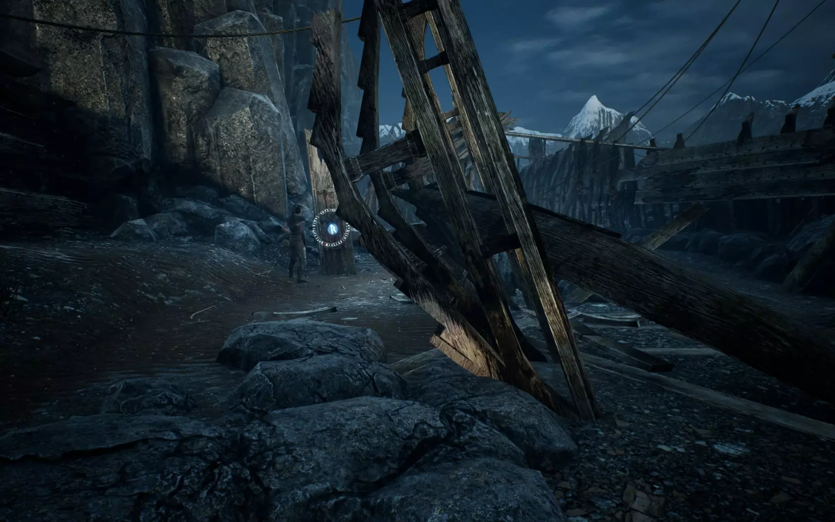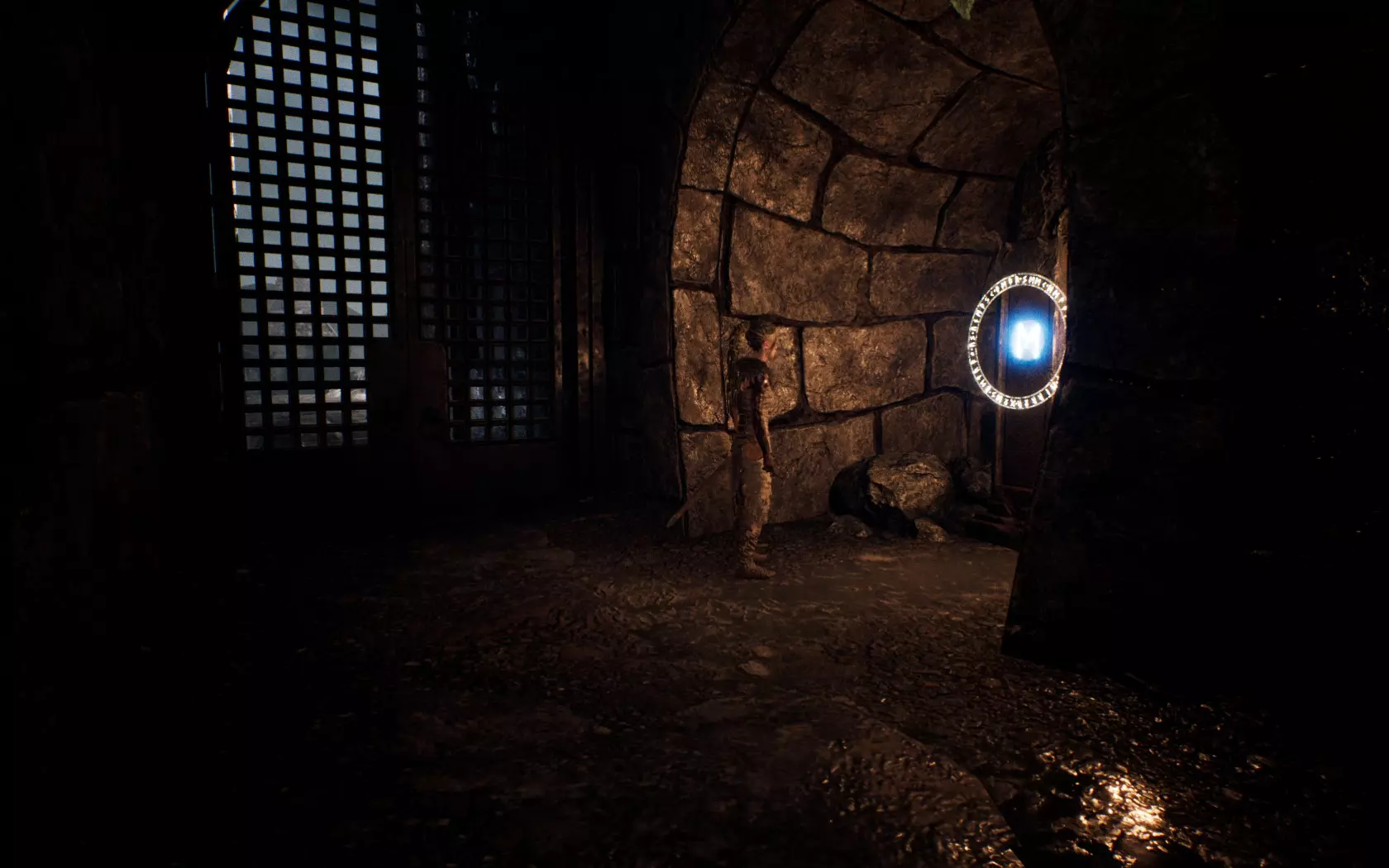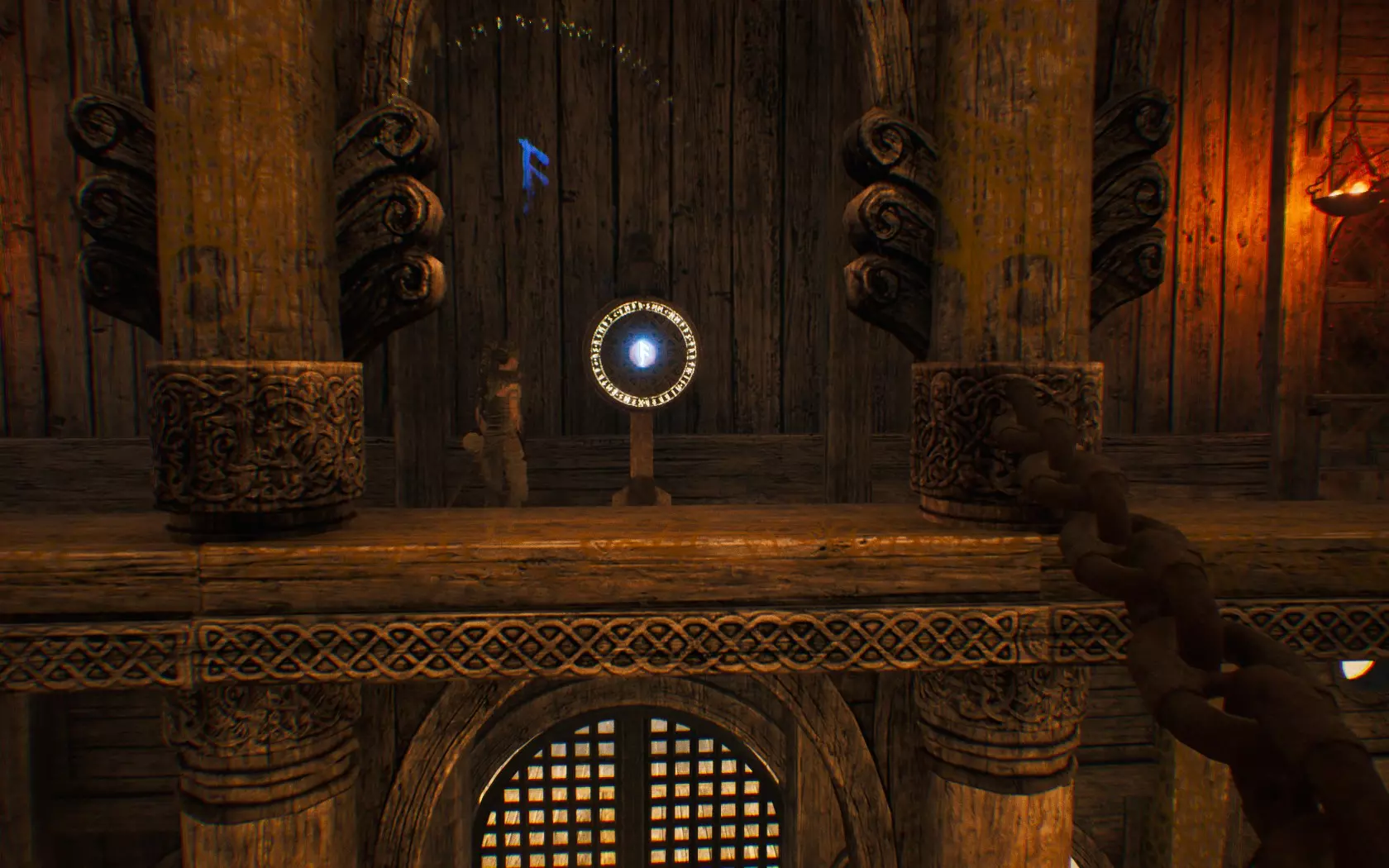 让你身后的大门保持开启状态,前往右侧的瓦尔基里(valrvn)所在处,那里有一座类似堡垒的建筑。进入后,寻找一个可以爬进去的小洞,符文就在那里。通往赫尔海姆的桥梁。15)